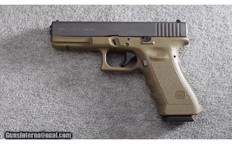 Description: This Glock 17 in 9mm Luger remains in very good condition. It has a flat dark earth (FDE) polymer frame. There is some slight finish wear from prior use. The bore is bright and shiny. This pistol will ship in the original Glock clamshell case along with two (2) TEN round magazines and mag loader. 9mm Luger SOLD Metal Condition: Very Good Bore Condition: Excellent Barrels: 4.4 Triggers: SAFE Action Trigger Butt Pad: Textured FDE Polymer Grip Weight: 24 Oz Sights: Standard Glock Sights Item Location: Wheeling |