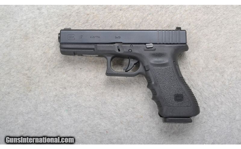 Description: This Glock Model 17 is a right hand semi-auto pistol in 9mm Cal. It has a 4.5 inch barrel with a rear serrated slide. A blade front sight and notch rear sight. 3 sight dots. The grip is a textured black polymer with molded finger grooves. It has a lower accessory rail. 9mm Parabellum SOLD Chambers: 17 round magazine. Metal Condition: Excellent. Bore Condition: Excellent. Barrels: 4.5 inch barrel with a rear serrated slide. Weight: 26 oz. Sights: Blade front. Notch rear. 3 sight dots. Item Location: Richfield, WI |