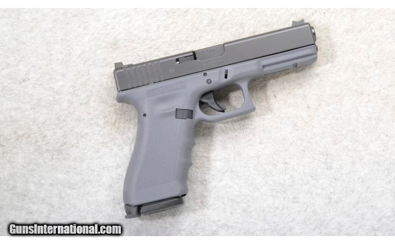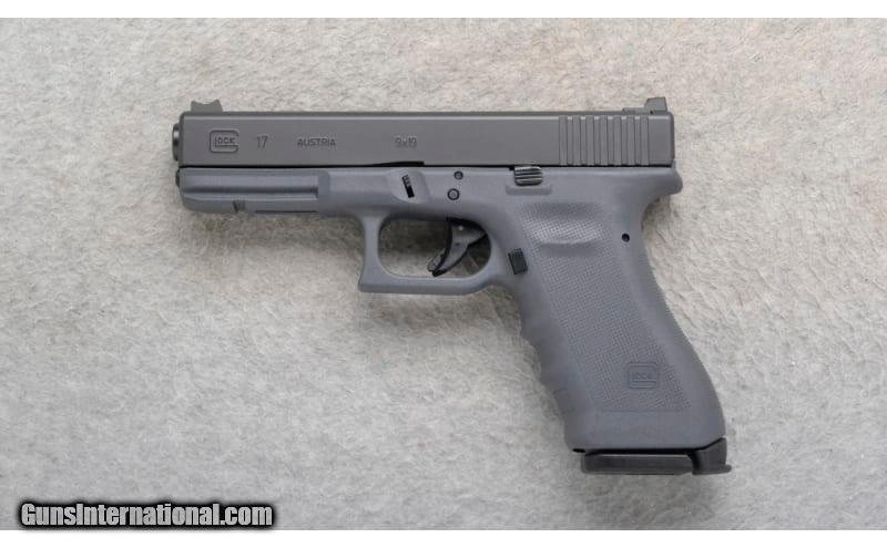 Description: This Glock Model 17 is a right hand semi-auto pistol in 9mm Cal. It has a 4.25 inch barrel with a rear serrated slide. A green high visibility front sight and a U notch rear sight. The grip is a textured grey polymer with molded finger grooves. It has a lower accessory rail. 9mm Parabellum SOLD Chambers: 17 round magazine. Metal Condition: Excellent. Bore Condition: Excellent. Barrels: 4.25 inch barrel with a rear serrated slide. Weight: 26 oz. Sights: Green high visibility front. U notch rear. Item Location: Richfield, WI |