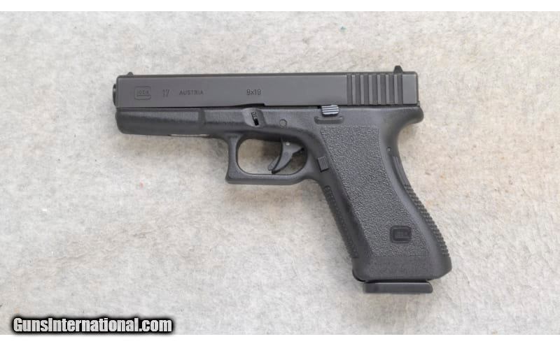 Description: This Glock Model 17 is a right hand semi-auto pistol in 9mm Cal. It has a 4.25 inch barrel with a rear serrated slide. A blade front sight and notch rear sight with white highlights. The grip is a textured black polymer. 9mm Parabellum SOLD Chambers: 10 round magazine. Metal Condition: Very Good. Bore Condition: Excellent. Barrels: 4.25 inch barrel with a rear serrated slide. Weight: 24 oz. Sights: Blade front. Notch rear. White highlights. Item Location: Richfield, WI |