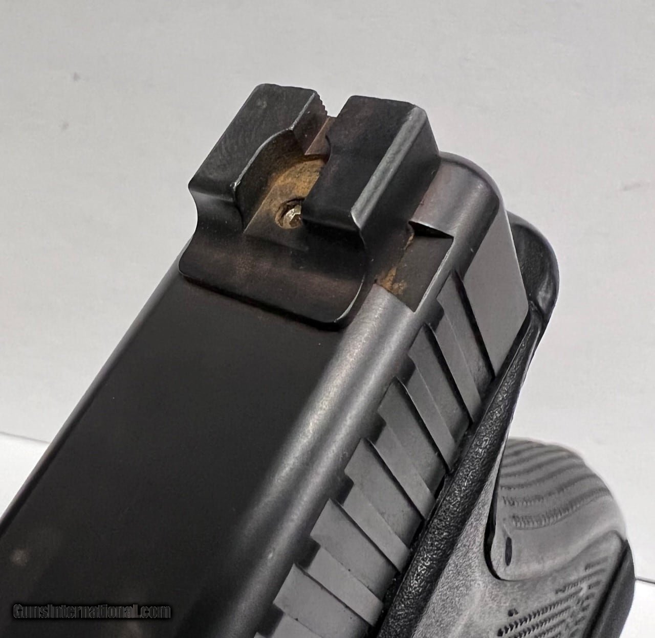 Description: Guns Listing ID: 502795 Police Trade In - Condition listed as Fair due to rust on rear sight and wear on Mag well. (Please See pictures) Glock 17 Gen 4 with Fiber Optic Sight and 1 magazine. The Glock 17 series has been the standard sidearm for numerous militaries and hundreds of law enforcement agencies worldwide for decades. This ex-Law Enforcement Glock 17 Gen 4 features aggressive texturing on the sides of the grip as well as finger grooves. Night sights were added, and 2-17 round magazine is included. Please see pictures for other accessories that come with it. Don‚‚t miss out on our other trade ins at Accurate Law Enforcemen SOLD Manufacturer: GLOCK Model: 17 G17 GEN 4 9mm w/ 1 MAG (POLICE TRADE-IN) Caliber Info: 9 MM LUGER Condition: Used - Non-Certified Barrels: 4.50 BARREL Finish: BLACK |