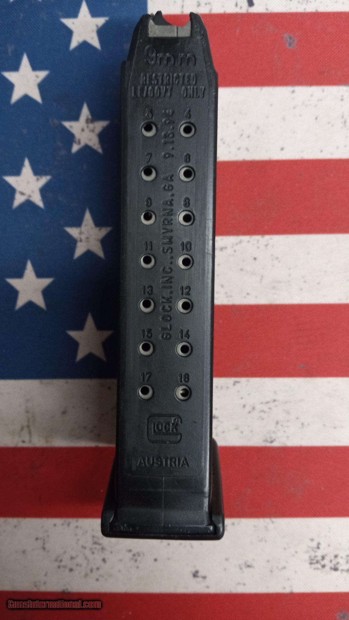 Description: Guns Listing ID: 1305685 Glock 17 Gen 2 police trade in metropolitan Police department of district Columbia firearm comes with 1-17 round magazine marked restricted Le/ government use only comes with a hard plastic case not original. Has night sights that still glow do have a picture listed that‚‚s all black with this picture of the sights SOLD Manufacturer: GLOCK Model: 17 Gen 2 Caliber Info: 9MM LUGER (9X19 PARA) Condition: Used - Non-Certified Barrels: 4 BARREL Finish: BLACK |