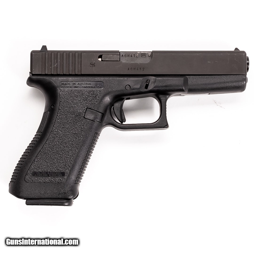 Description: Guns Listing ID: 307139 The Glock 17 Gen 2 is a robust all-purpose handgun from the 2nd generation of Glock‚‚s legendary lineup. This is the generation before finger grooves and an accessory rail which to some is an added bonus and a detriment in the opinion of others. If you‚‚re looking for finger grooves and an accessory rail the 3rd and 4th generation have both. 2-17 round Glock mags include SOLD Manufacturer: GLOCK Model: 17 GEN 2 Caliber Info: 9MM LUGER Condition: Used - Certified Barrels: 4.5 BARREL Finish: BLACK |