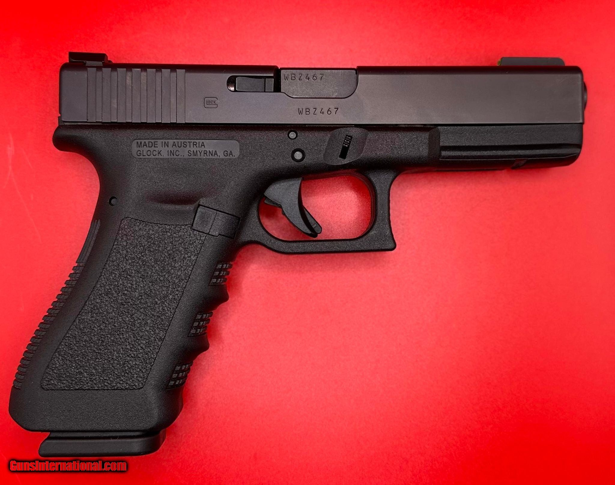 Description: Guns Listing ID: 899031 The Glock 17 Gen 3 pistol is safe, easy, and quick - precisely what you need in critical situations. It features Glock‚‚s Safe Action system which provides a consistent trigger pull from the first to the last round. The three automatic independently operating mechanical safeties are built into the fire control system of the pistol. Crafted with durability in mind, the frame is made of polymer with hardened steel guides and features an ideal grip angle and low weight. The advanced surface treatment of the slide and the mechanically locked, cold-hammer-forged barrel results in optimal hardness by reducing wear and tear and it makes it corrosion-resistant, even when operating in saltwater conditions. Brand: Glock Model: G17 Gen3 Category: Pistols Caliber: 9mm Luger Capacity: 17+1 Action: DAO Frame Finish: Black OAL: 8.03\" Frame Material: Polymer Hand: Right Sight Style: Fixed Slide Finish: Matte Black Slide Material: Steel Slide Description: Serrated Matte Black Steel Grips: Finger Grooved Black Rough Texture Polymer Safety: Trigger, Firing Pin, Drop Barrel Description: 4.48\" Cold Hammer Forged Max Capacity: 17 Weight: 32.28 oz Frame Description: Black Polymer with Picatinny Rail & Serrated Trigger Guard FIREARM IS SHIPPED WITH ONLY (1) 17 RD MAGAZINE. NO BOX/BAG. PRICE FIRM SOLD Manufacturer: GLOCK Model: 17 Gen 3 Caliber Info: 9MM LUGER (9X19 PARA) Condition: Used - Non-Certified Barrels: 4.48 BARREL |