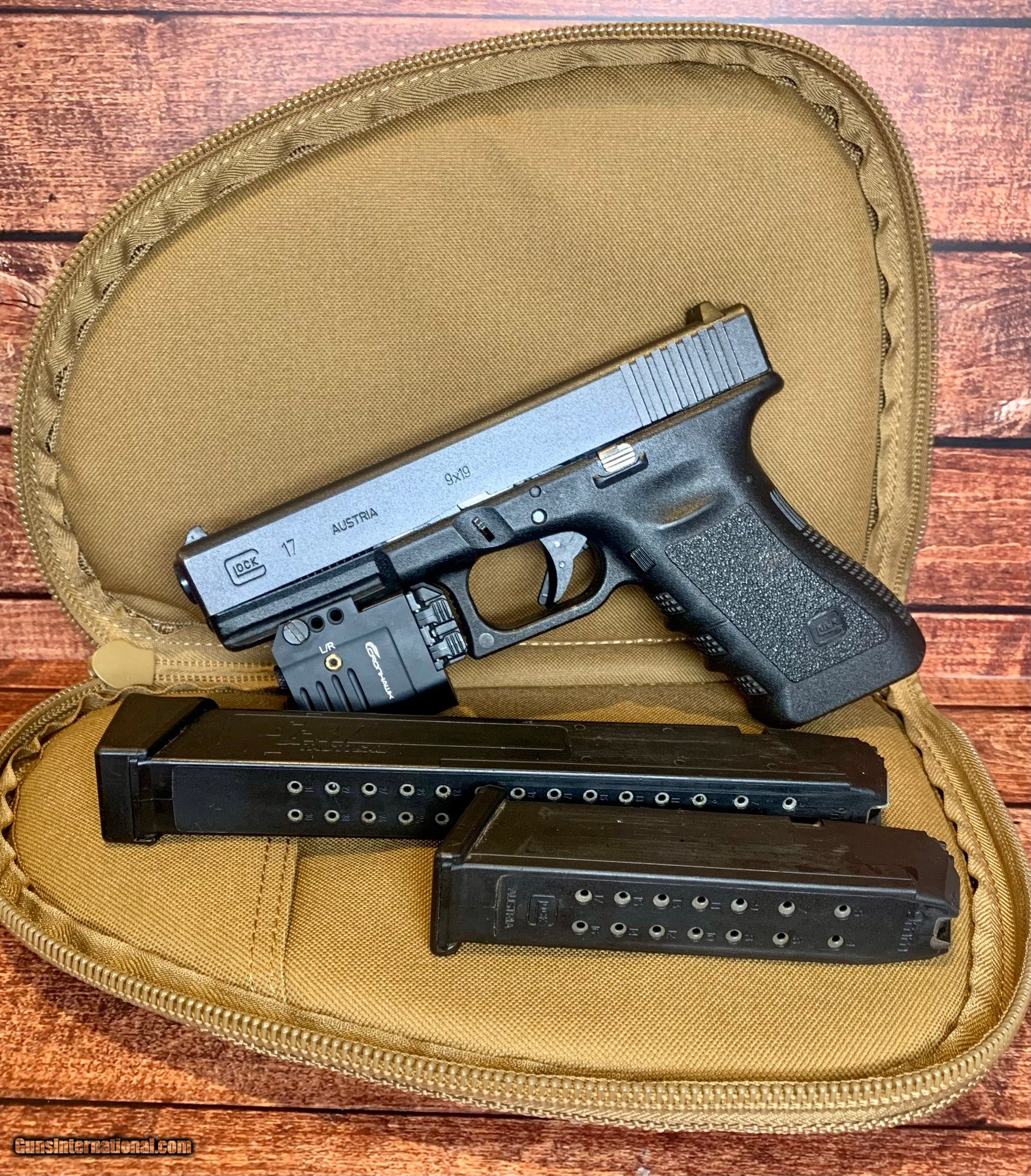 Description: Guns Listing ID: 479768 Experience the unparalleled performance and reliability of the Glock 17 Gen3, a semi-automatic pistol that has become a staple in the world of firearms. Renowned for its robust design and impressive capacity, this 9mm Luger is the preferred choice of professionals, trusted by law enforcement officers and military personnel worldwide. This Glock 17 Gen3 is in excellent condition, showcasing minimal signs of use or handling, making it a prized addition for collectors and enthusiasts alike. The bore boasts a spotless, mirror-like finish with sharp rifling, ensuring precise accuracy and performance. Included in the package is one (1) 17-round mag and one (1) 32-round mag—providing you with ample firepower. Also included is an attached rail mounted Cronhawk rechargeable light/red laser combo weapon light. Firearm also comes with a soft pistol case. Designed with a striker action and a 4.49\" barrel, this firearm is engineered for precision and reliability. The black Gen3 polymer frame features ergonomic finger grooves, enhancing grip and control during use. Its sighting system includes a front fixed blade with a white dot and a rear drift adjustable square notch with a white highlight, allowing for quick target acquisition. Manufactured in Austria, this model is a testament to superior craftsmanship and functional design. Owning a Glock 17 Gen3 is not just about possessing a firearm; it‚‚s about holding a piece of modern firearm history. Its unmatched reliability and optimal magazine capacity make it an invaluable asset for both professional use and personal defense. Don‚‚t miss the opportunity to own a firearm that combines innovation with a legacy of trust and performance. Specifications: Manufacturer Glock Model 17 Submodel Gen3 Caliber 9mm Luger Overall Condition Excellent Bore Condition Excellent Action Striker Barrel Length 4.49\" Finish Black Stock/Grips 9mm Luger Sight/Optic Front fixed blade with white dot. Rear drift adjustable square notch with white highligh SOLD Manufacturer: GLOCK Model: 17 Gen 3 Condition: Used - Non-Certified Barrels: 4.49 Gauge Info: 9MM LUGER (9x19 PARA) Finish: black |