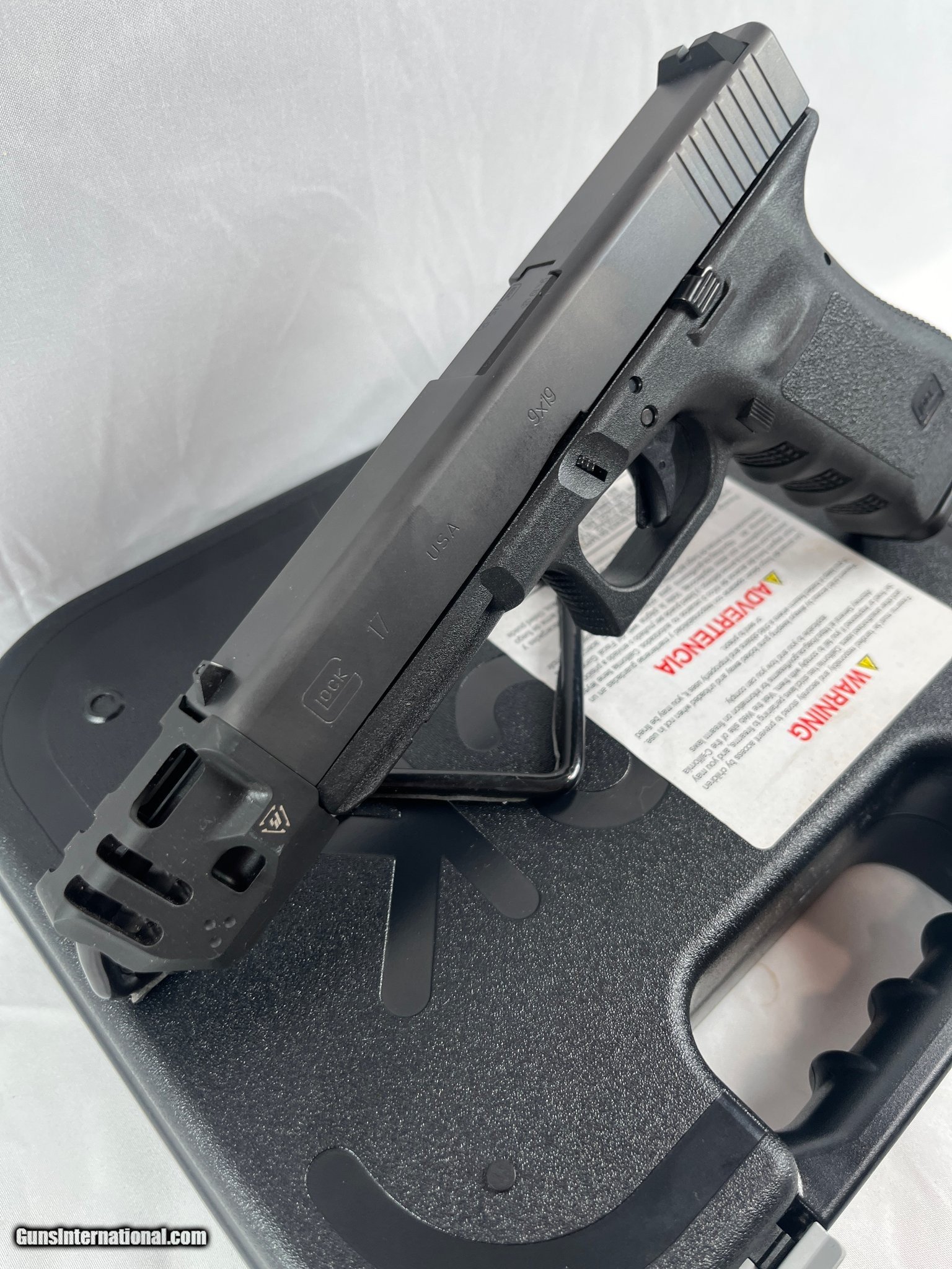 Description: Guns Listing ID: 564242 Glock G17 Gen 3 – 9mm – Strike Industries Mass Driver – Very Good Condition Description: Offered here is a Glock G17 Gen 3 chambered in 9mm, upgraded with a Strike Industries Mass Driver compensator. This full-size semi-automatic pistol is well-regarded for its proven reliability, accuracy, and adaptability, making it a trusted platform for duty, defense, and competition use. It features a 4.49-inch barrel, a matte black slide, and a polymer frame with finger grooves and textured grip. The addition of the Mass Driver compensator reduces muzzle rise and recoil, allowing for faster follow-up shots and improved control. Standard Glock fixed sights are included, with a durable and simple three-dot sight picture. Whether for competition shooting, range use, or personal defense, this Glock G17 Gen 3 with Mass Driver delivers Glock’s legendary dependability with enhanced performance. Features: Chambered in 9mm 4.49-inch barrel Matte black slide Polymer frame with textured grip and finger grooves Fixed Glock sights Upgraded with Strike Industries Mass Driver compensator Includes: (2) 17-round magazines Factory case SOLD Manufacturer: GLOCK Model: Glock 17 Gen 3 Caliber Info: 9MM LUGER (9X19 PARA) Condition: Used - Non-Certified Barrels: 4.48" BARREL Action: SEMI AUTOMATIC Weight: 2 LBS. |