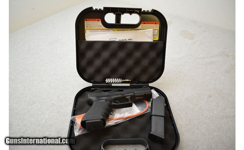 Description: Overall condition is essentially like new in box. Previous owner stated he never shot it and there is evidence this is correct. Comes with the factory case, papers, lock, 2 magazines, cleaning rod and brush, and magazine loader. 9mm Luger SOLD Chambers: Semiautomatic fed from detachable magazines. Metal Condition: Excellent. Wood Condition: Frame is in excellent condition. Bore Condition: Like new rifling and shine. Barrels: 4½" Blued. Triggers: Matte black polymer with integrated safety. Stock Dimensions: N/A Fore End: Single slot accessory rail. Butt Pad: Matte black polymer frame. Weight: 1lb 8oz Sights: Fixed front dot and "U" outlined rear notch; Glock standard. Chokes: N/A Item Location: Green Bay |