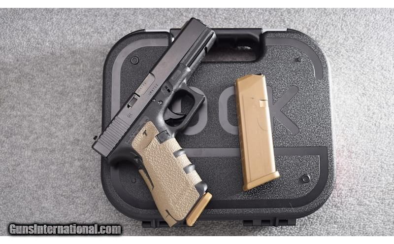 Description: This Glock 17 Gen 4 in 9mm Luger remains in very good overall condition. It has an AmeriGlo front night sight and a serrated black U notch rear sight. A set of Talon rubber grips are attached. The bore is bright and shiny. The slide does show some slight holster wear on top. This pistol will ship in the original Glock clamshell case along with two (2) FDE, flat dark earth, standard capacity magazines. 9mm Luger SOLD Metal Condition: Very Good Bore Condition: Excellent Barrels: 4.4 Triggers: Factory SAFE Action Trigger Butt Pad: Textured Black Polymer Grip Weight: 24 Oz Sights: AmeriGlo Front Sight - Serrated U Notch Rear Item Location: Wheeling |