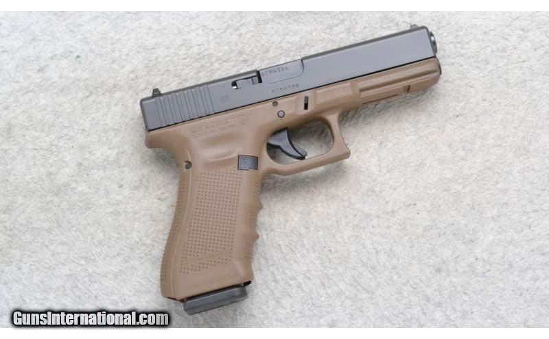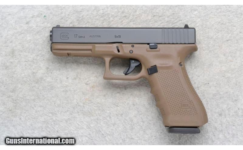 Description: This Glock Model 17 Gen 4 is a right hand semi-auto pistol in 9mm Cal. It has a 4.5 inch barrel with a rear serrated slide. A blade front sight and notch rear sight with white highlights. The grip is a textured FDE polymer with molded finger grooves. It has a lower accessory rail. 9mm Luger SOLD Chambers: 17 round magazine. Metal Condition: Excellent. Bore Condition: Excellent. Barrels: 4.5 inch barrel with a rear serrated slide. Weight: 28 oz. Sights: Blade front. Notch rear. White highlights. Item Location: Richfield, WI |