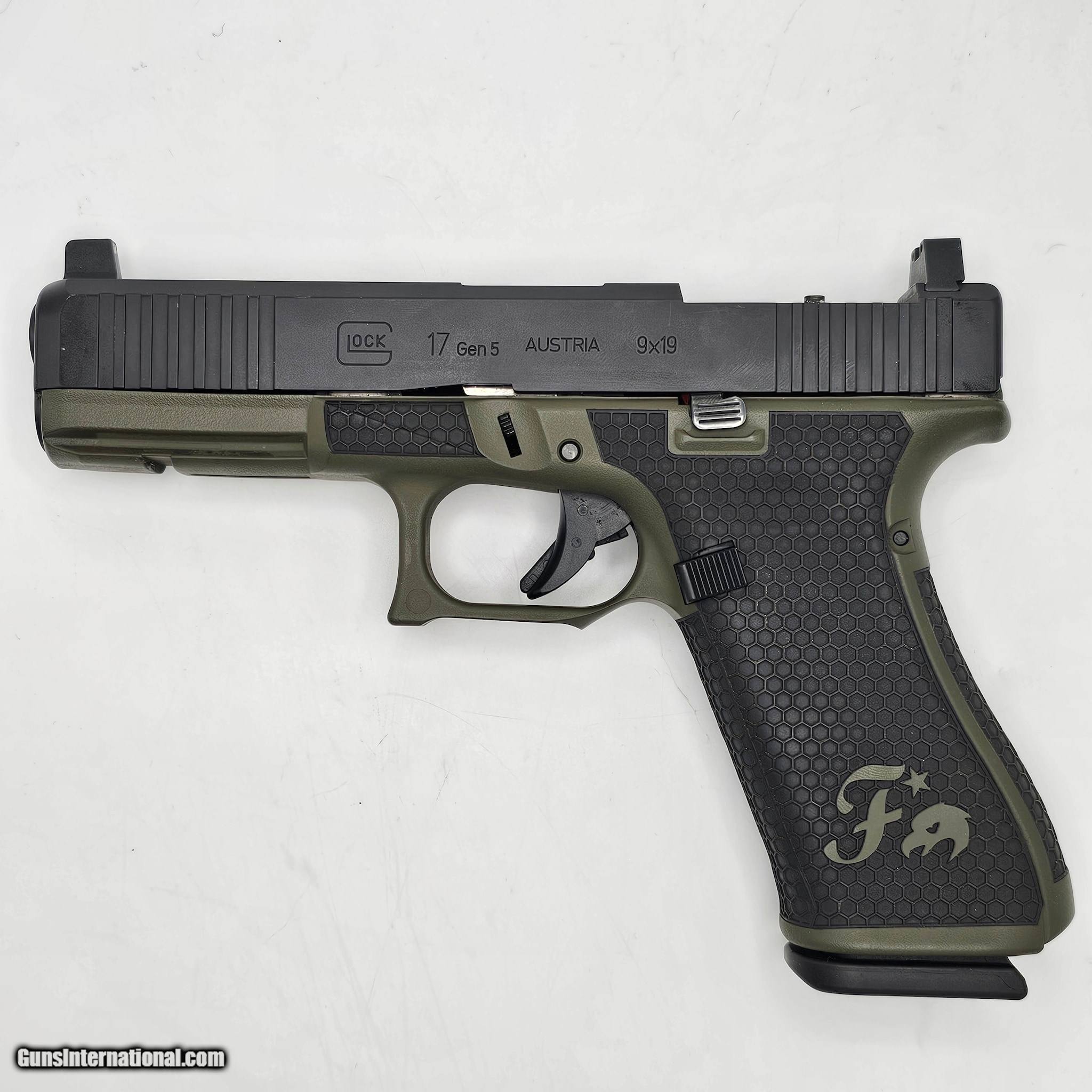 Description: Guns Listing ID: 1200465 Type: PISTOL Make: GLOCK Model: 17 GEN 5 Caliber: 9MM Condition: EXCELLENT Additional Info: FIREARM AND ONE 17RD MAGAZINE ONLY, SLIDE CUT FOR RMR, OPTIC HEIGHT TRIJICON NIGHT SIGHTS SOLD Manufacturer: GLOCK Model: 17 GEN 5 Caliber Info: 9MM LUGER (9X19 PARA) Condition: Used - Non-Certified Barrels: 4.5 BARREL Finish: GREEN |
