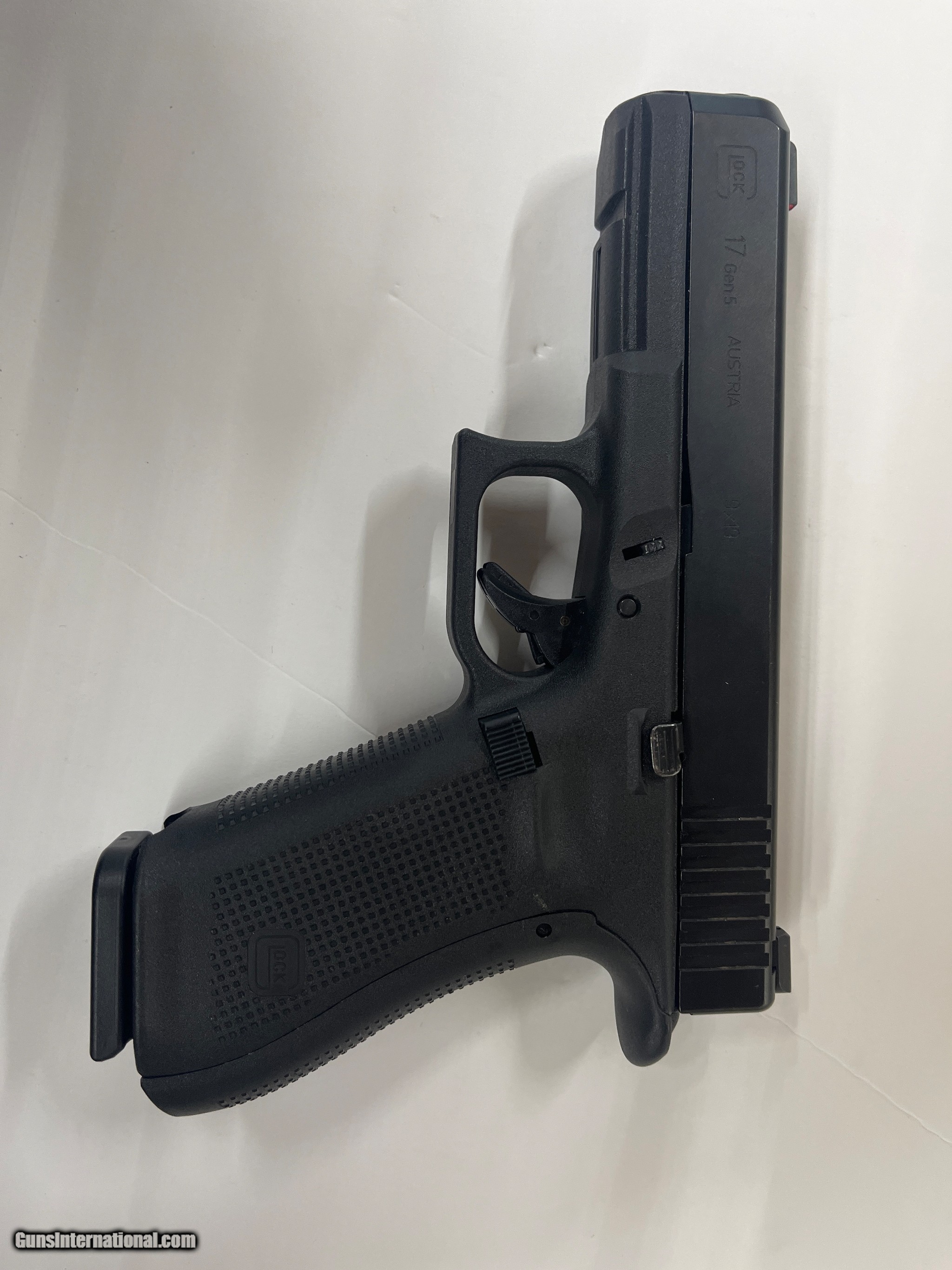 Description: Guns Listing ID: 1110761 Comes with one magazine SOLD Manufacturer: GLOCK Model: 17 GEN 5 Caliber Info: 9MM LUGER (9X19 PARA) Condition: Used - Non-Certified Barrels: 5 BARREL |