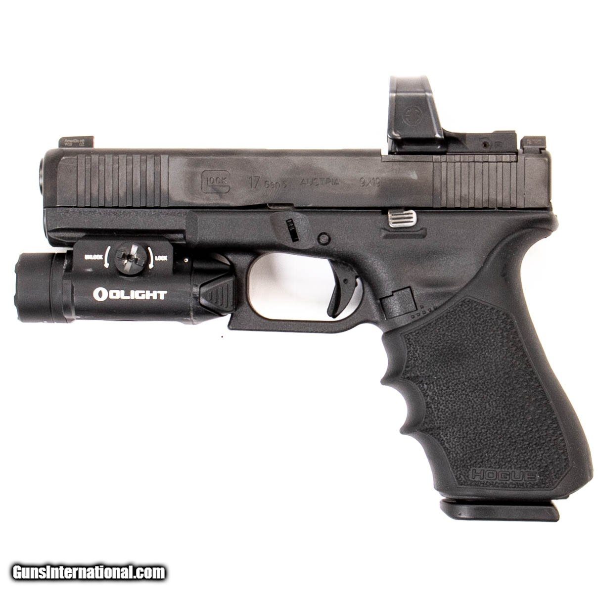 Description: Guns Listing ID: 494675 This Gen 5 Glock 17 comes with three 17-round magazines, the original case, owner‚‚s manual, a Hogue grip sleeve, a holster and is equipped with an Olight PL-3 Valkyrie Tac light (no charger) and a Sig Sauer Romeo Zero red dot optic. SOLD Manufacturer: GLOCK Model: 17 GEN 5 Caliber Info: 9MM LUGER (9x19 PARA) Condition: Used - Non-Certified Barrels: 4.50 Action: SEMI AUTOMATIC Finish: black Weight: 2 |