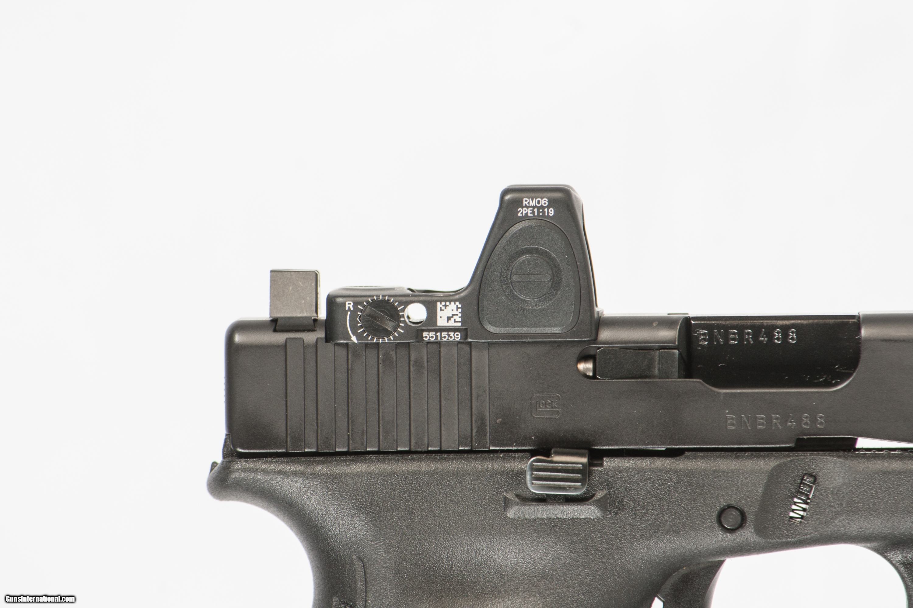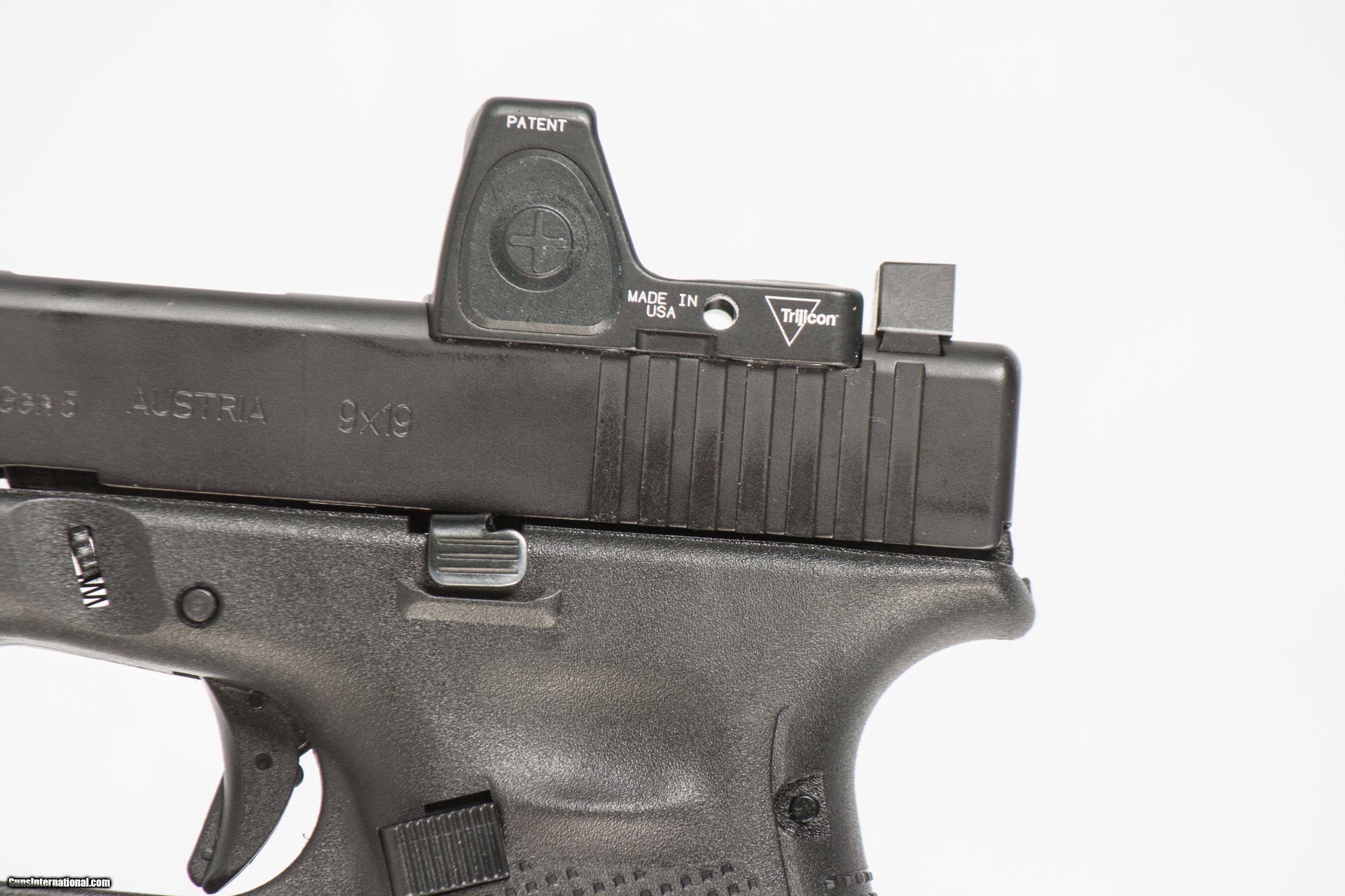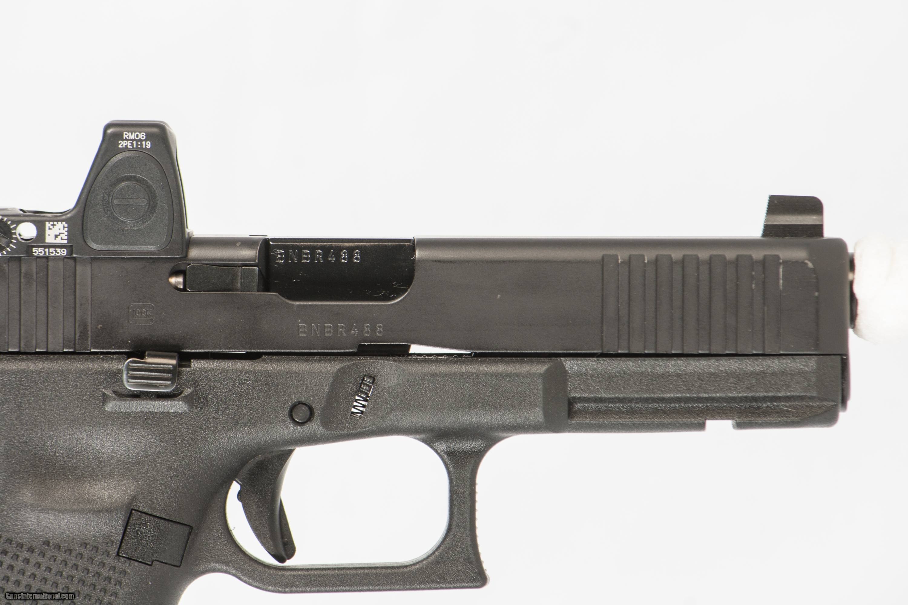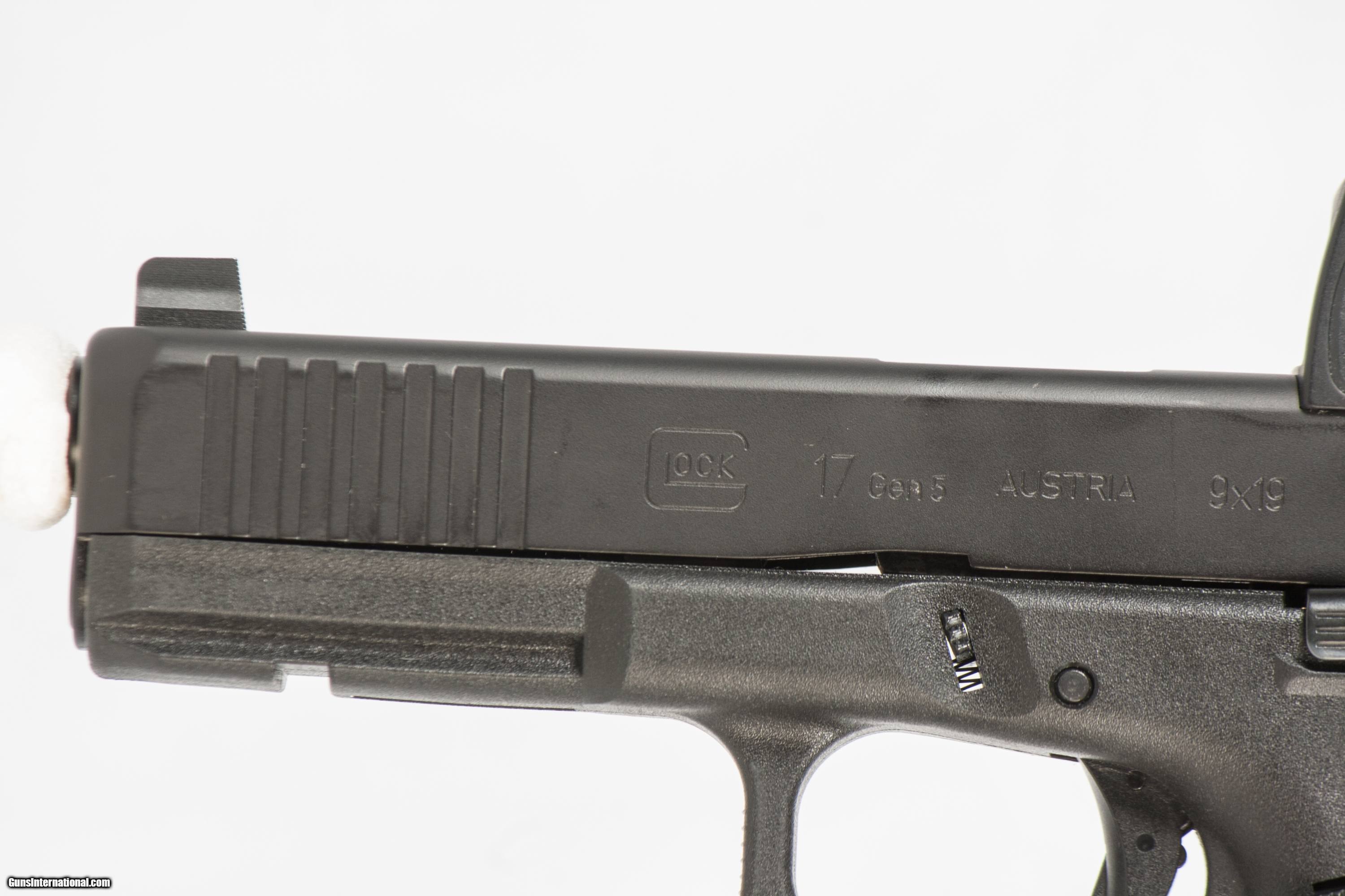 Glock 17 Gen 5 chambered in 9mm with a 4 1/2 inch barrel with a bright and shiny bore with a case 2 extra mags and a Trijicon RMR. This firearm is in excellent condition and is covered by Dury's Lifetime Warranty.