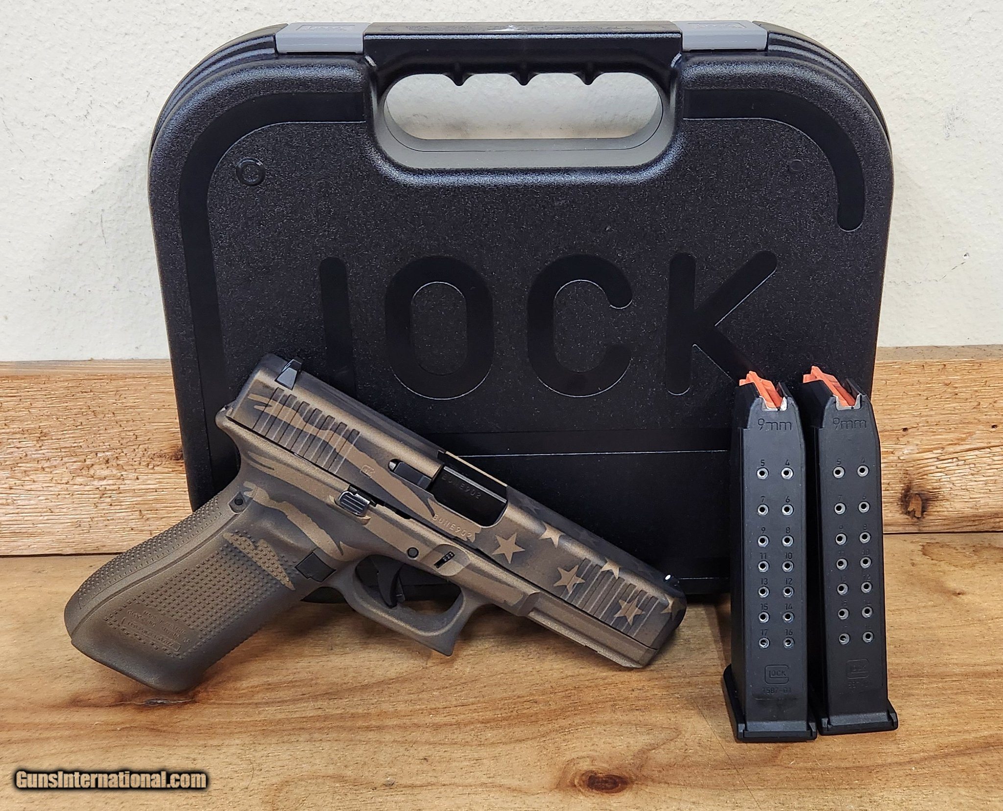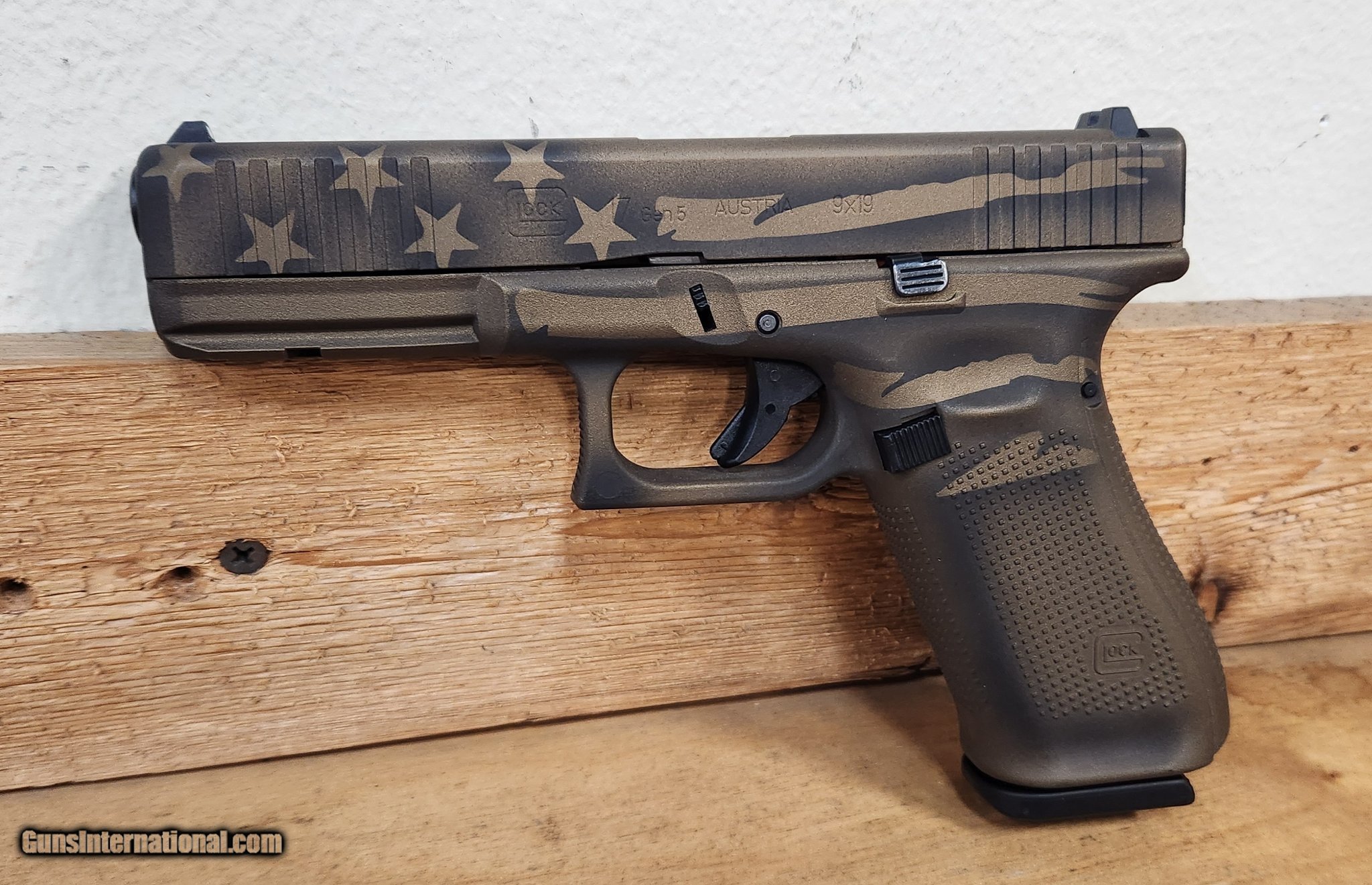 Description: Guns Listing ID: 494918 In nice condition with only minor handling marks. It features the distressed American Flag Cerakote pattern. Includes box and two 17rd mags. Glock Factory Info: Designed for professionals, the GLOCK 17 is trusted by law enforcement officers and military personnel around the globe because of its unsurpassed reliability, optimal magazine capacity of 17 rounds in the standard magazine and its low weight. With the signature \"Safe Action\" trigger system, the GLOCK 17 9 mm Luger pistol is safe, easy, and quick - precisely what you need in critical situations. SOLD Manufacturer: GLOCK Model: 17 Gen 5 - Flag Cerakote Caliber Info: 9MM LUGER (9x19 PARA) Condition: Used - Non-Certified Barrels: 4.49 Finish: bronze cerakote |