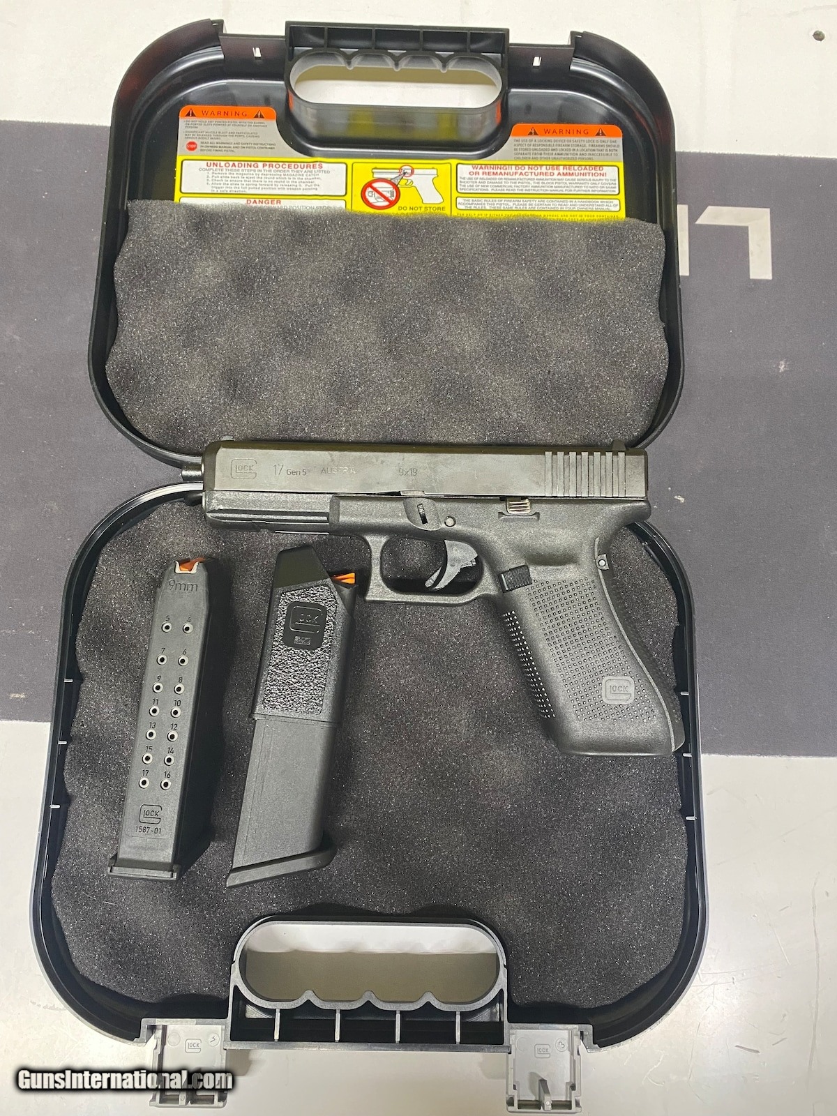Description: Guns Listing ID: 700355 *** PRE-OWNED / IN VERY GOOD CONDITION *** . \" GLOCK 17 GEN.5, 9MM SEMI-AUTO PISTOL -BLACK \" . \" COMES WITH ORIGINAL GLOCK HARD CASE AND 2 MAGAZINES \" \" SEE ALL PHOTOS \" . \" ALL FIREARMS ARE INSPECTED BY A CERTIFIED GUNS-SMITH & NRA INSTRUCTOR \" (ITEM #G-I-1949) SOLD Manufacturer: GLOCK Model: 17 Gen 5 Caliber Info: 9MM LUGER (9X19 PARA) Condition: Used - Non-Certified Barrels: 4.5 BARREL Finish: BLACK ANODIZED |