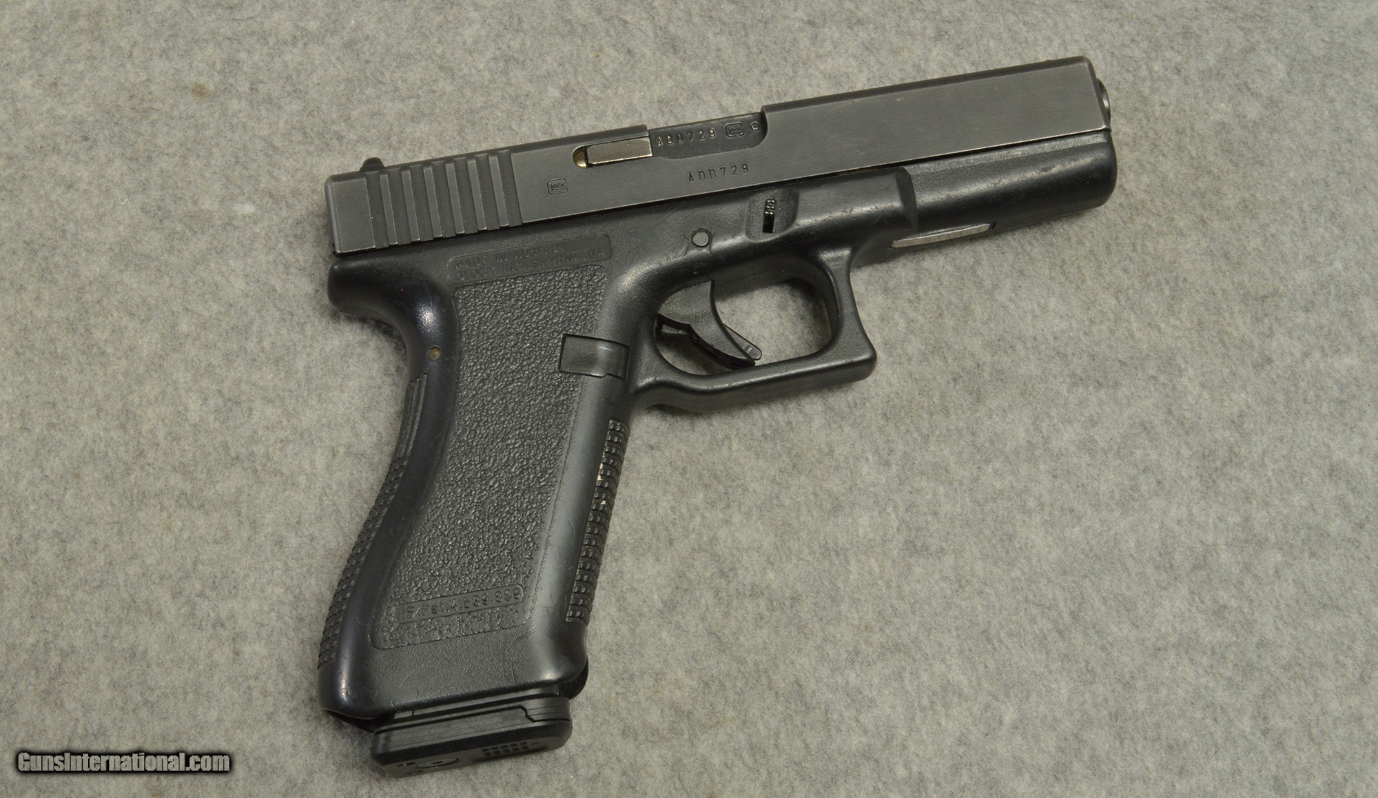 Description: For your consideration, the Glock 17 Gen2 semi-auto pistol chambered in 9mm Luger. The Glock 17 has been the mainstay for police sidearms, with a 4.49 in barrel and 17 round capacity. 9mm Luger SOLD Metal Condition: Very Good Bore Condition: Very Good Barrels: 4.49 in Weight: 2 lbs Item Location: Centerville, OH |