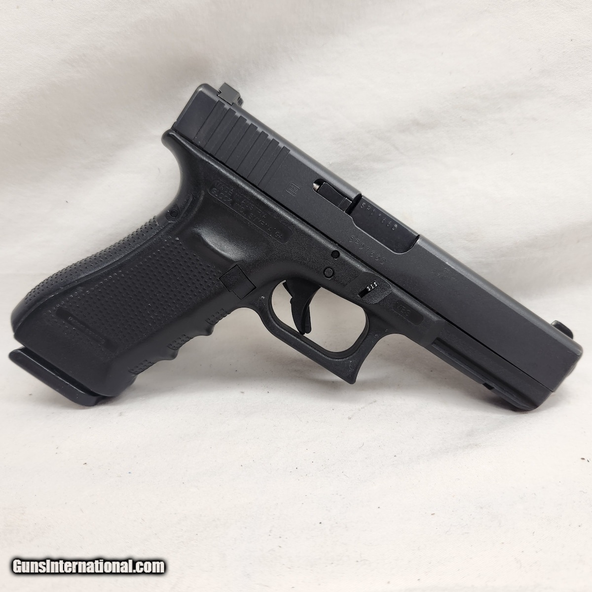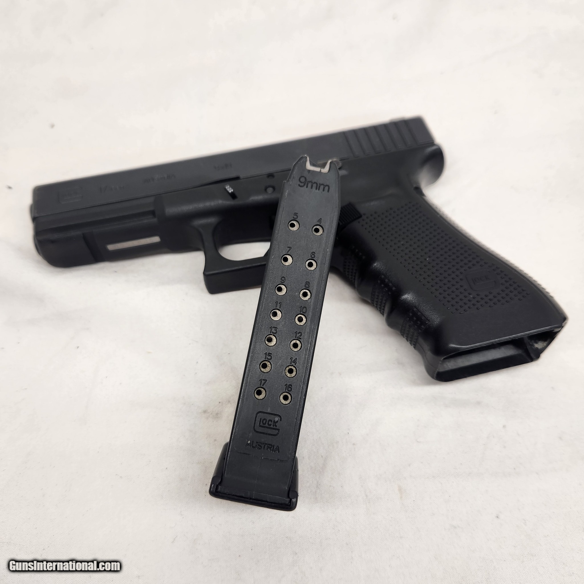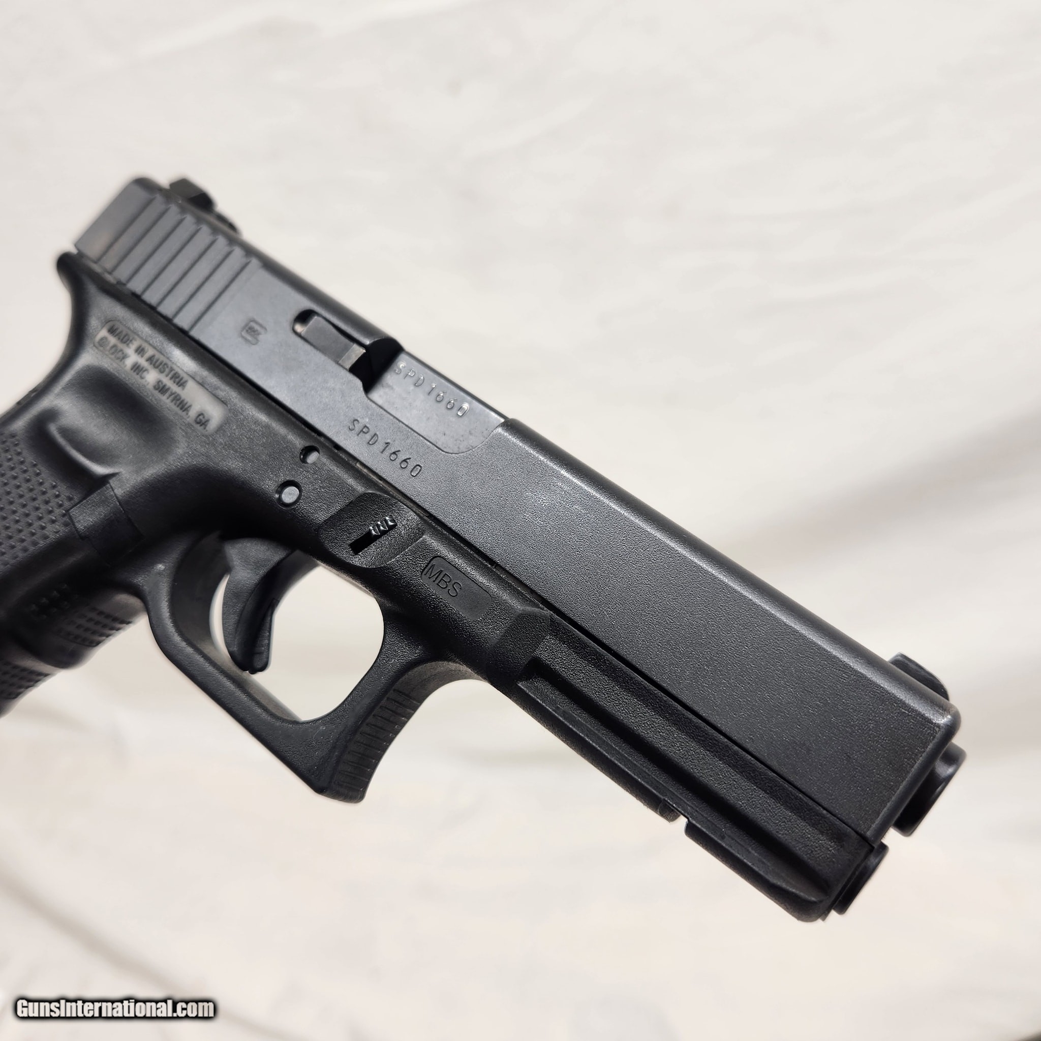 Description: Guns Listing ID: 890810 This Glock G17 Gen 4 is a full-size, semi-automatic handgun chambered in 9mm. It is a popular choice for use among law enforcement and security personnel and is suitable for self-defense. It is built on a polymer frame with rough textured technology for the ultimate in durability, while the dual recoil spring assembly substantially reduces wear and tear to the system. Modular backstraps allow users to customize the grip to fit their hand size while stippling and finger grooves ensure a steady, secure grasp with each shot fired. This pistol is also equipped with a Universal Glock Rail for easy mounting of accessories. \"SPD\" Prefix serial numbers SOLD Manufacturer: GLOCK Model: 17 Gen4 Caliber Info: 9MM LUGER (9X19 PARA) Condition: Used - Non-Certified Barrels: 4 BARREL Finish: BLACK |