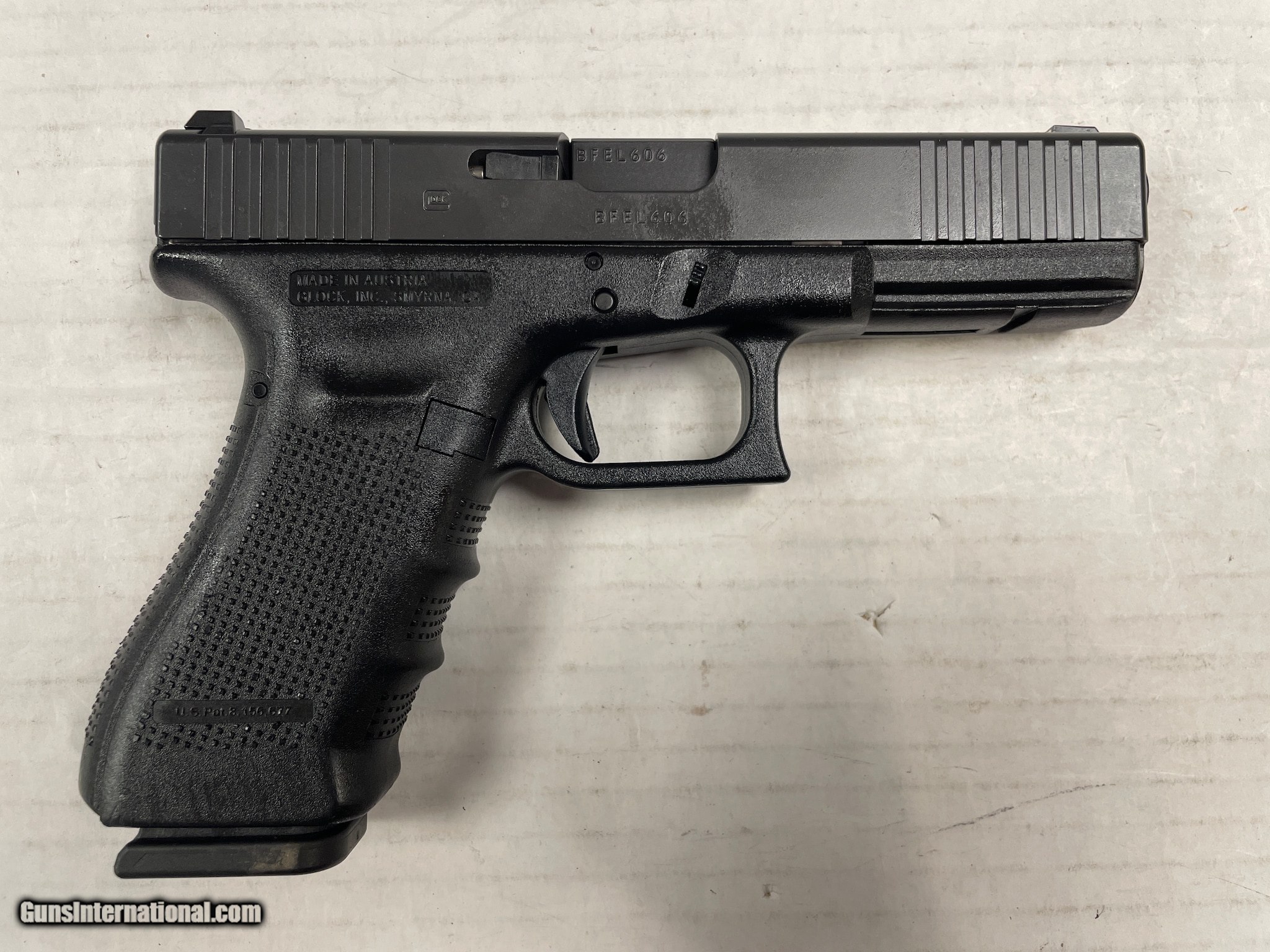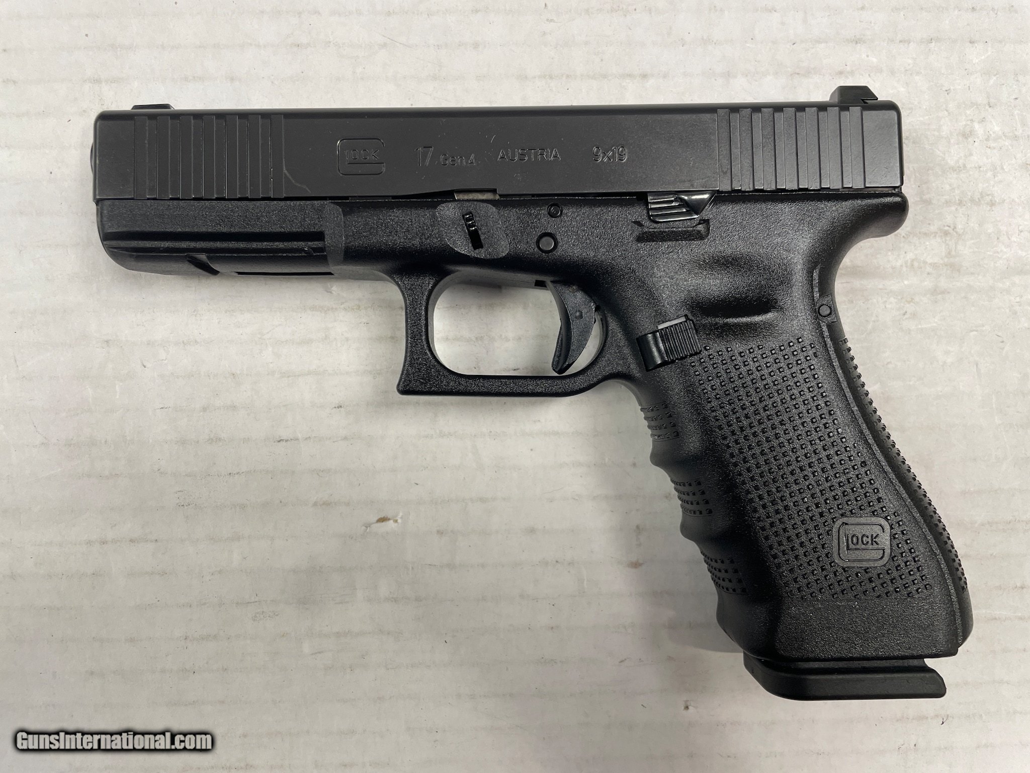 Description: Guns Listing ID: 1204827 Glock 17 Gen 4, 9MM Pistol, 4.48\" Barrel, Polymer Frame, Fixed Sights, 1x17rd Mags, BLK -Firearm is in good condition -Light usage marks -1x Mag, original hardcase SOLD Manufacturer: GLOCK Model: 17 Gen4 Caliber Info: 9MM LUGER (9X19 PARA) Condition: Used - Non-Certified Barrels: 4.48 BARREL Finish: BLACK |