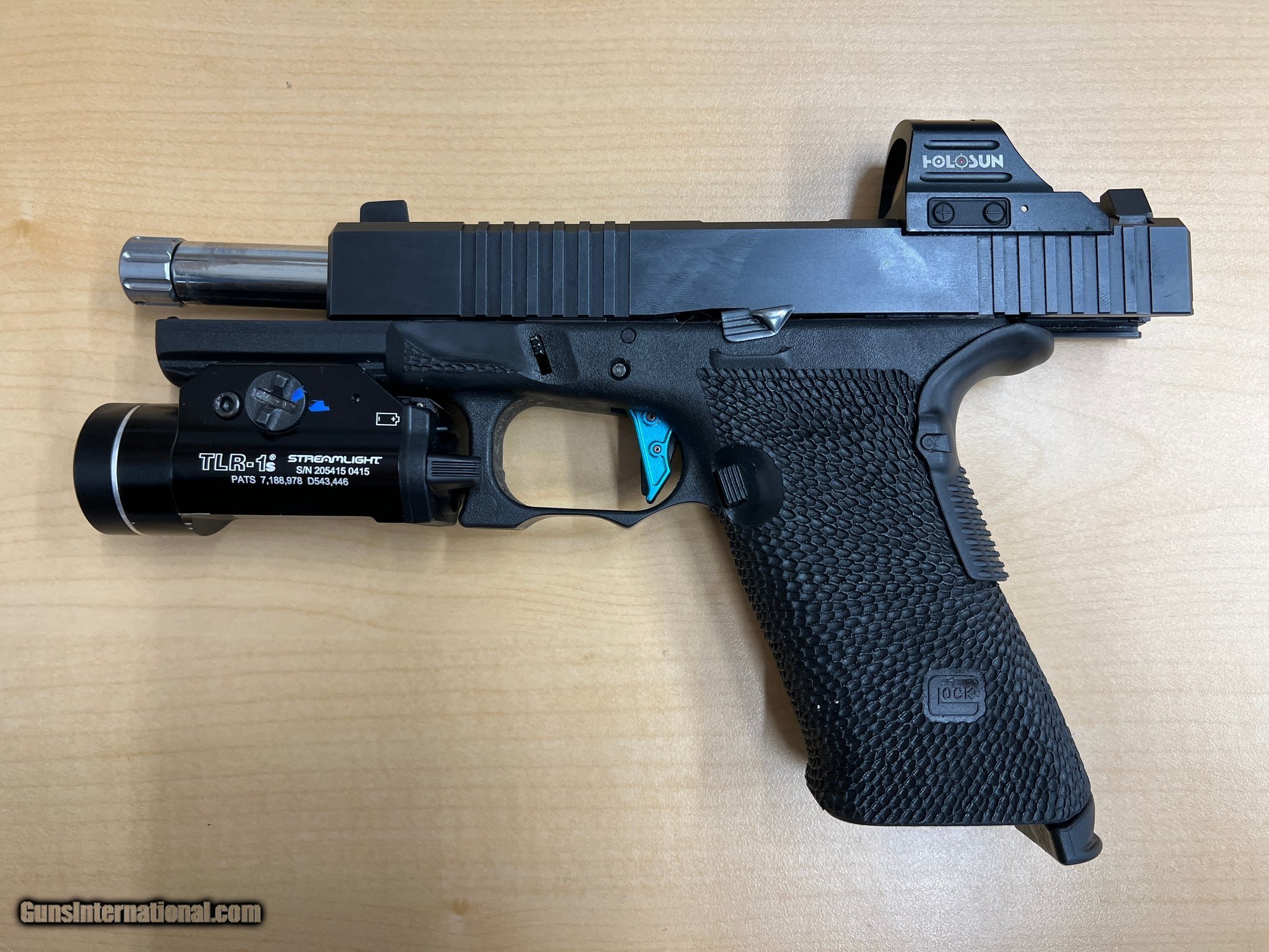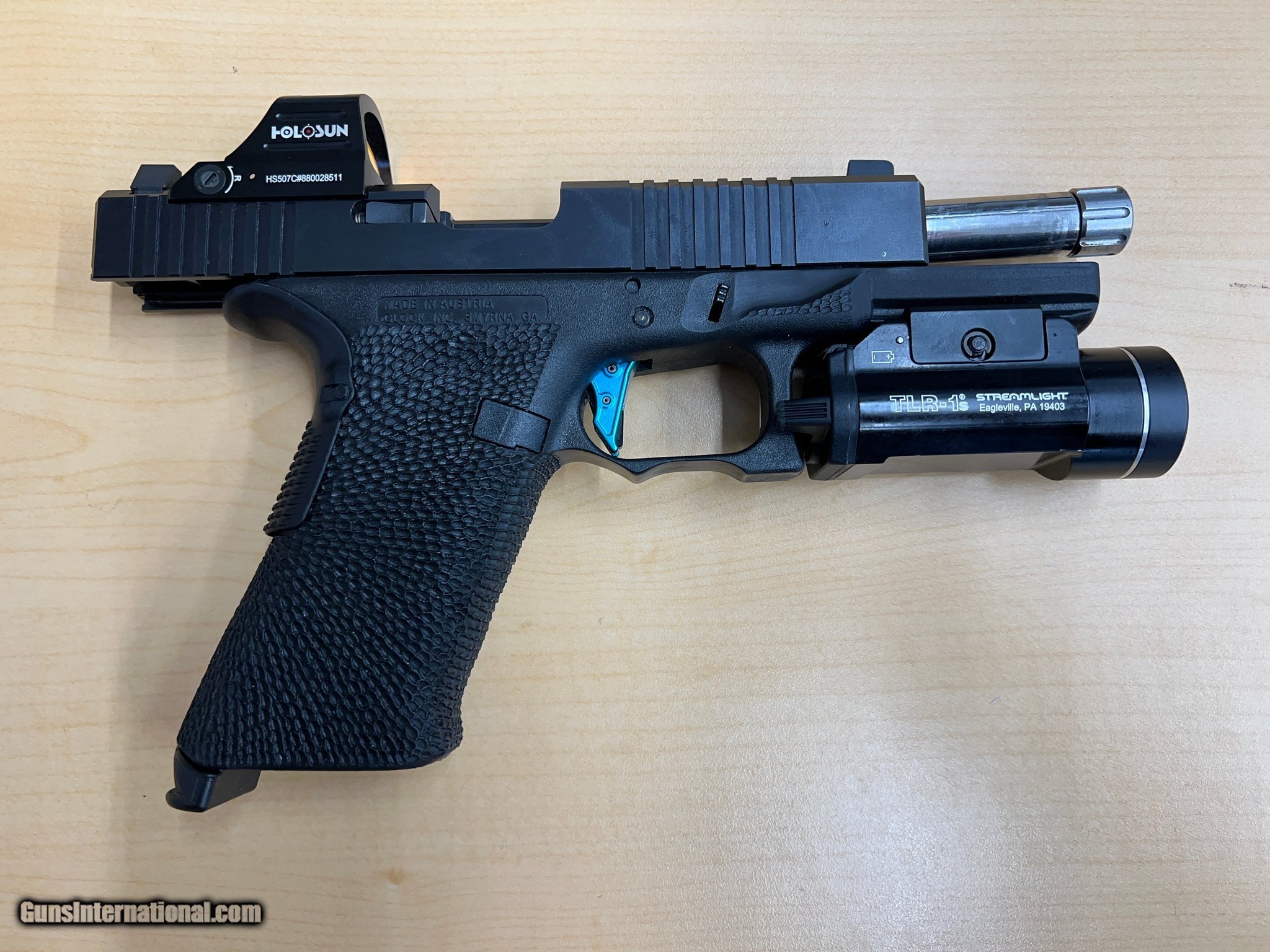 Description: Guns Listing ID: 1457218 This pistol has a 5in threaded barrel with a tactical rail. It has a fake Streamlight TLR-1 weapon light. It has a optic cut slide with a Holosun 507c red dot. It comes with a 17rd magazine and a holster. The trigger is from Overwatch with a custom stipple job. SOLD Manufacturer: GLOCK Model: 17 GEN4 Caliber Info: 9MM LUGER (9X19 PARA) Condition: Used - Non-Certified Barrels: 5 BARREL Finish: BLACK |