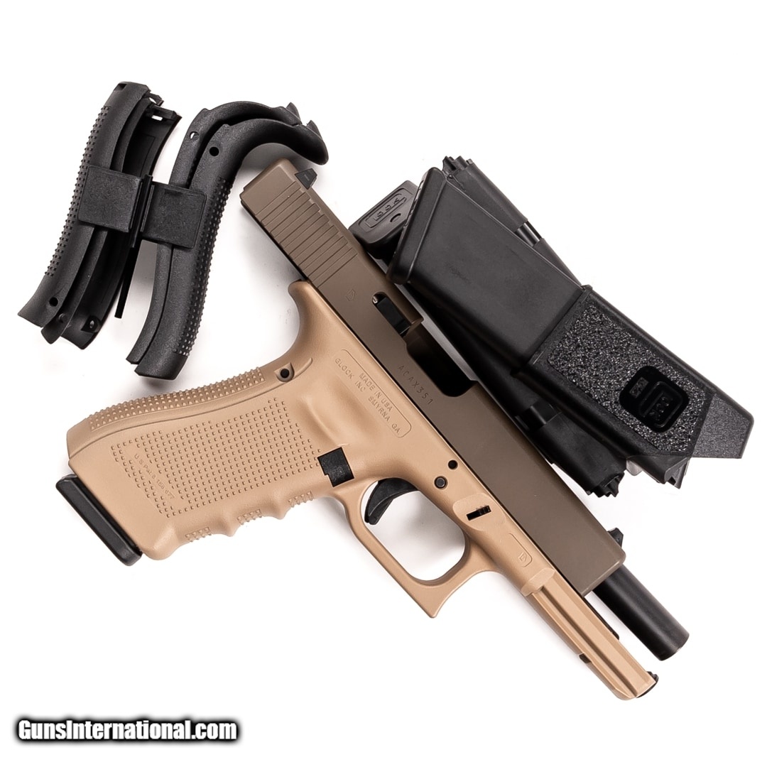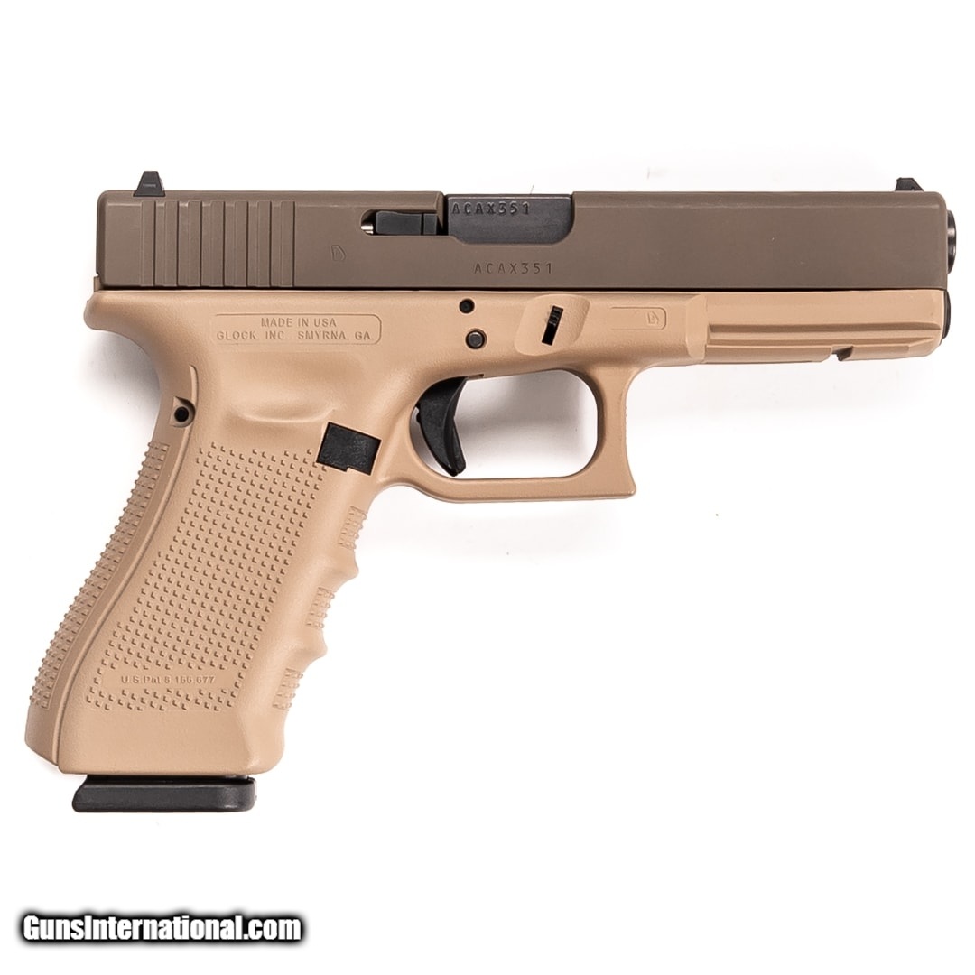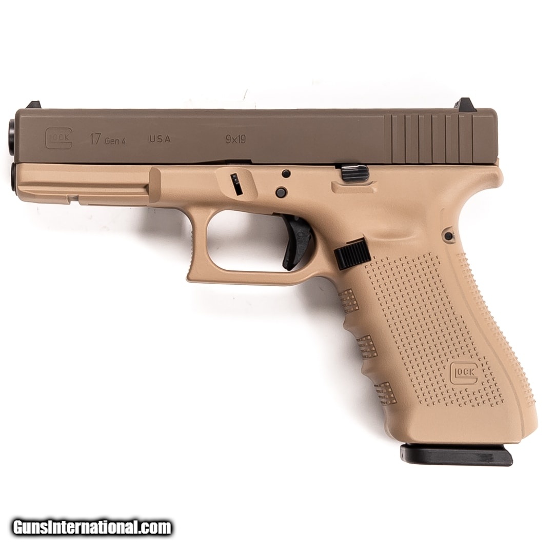 Description: Guns Listing ID: 287288 For decades, the Glock 17 series has been the standard sidearm for numerous militaries and hundreds of law enforcement agencies worldwide. For sale is this Glock G17 Gen 4, which features textured grips with finger grooves. This Glock 17 has a two-tone Flat Dark Earth finish with a slide a bit darker brown than the lower. Overall, it is in very good condition, with minor surface marks on the Cerakote. Purchase includes the original case, manual, four 17-round magazines, backstraps, and a loader. SOLD Manufacturer: GLOCK Model: 17 GEN4 Caliber Info: 9MM LUGER (9X19 PARA) Condition: Used - Certified Barrels: 4.5 BARREL Finish: FDE |