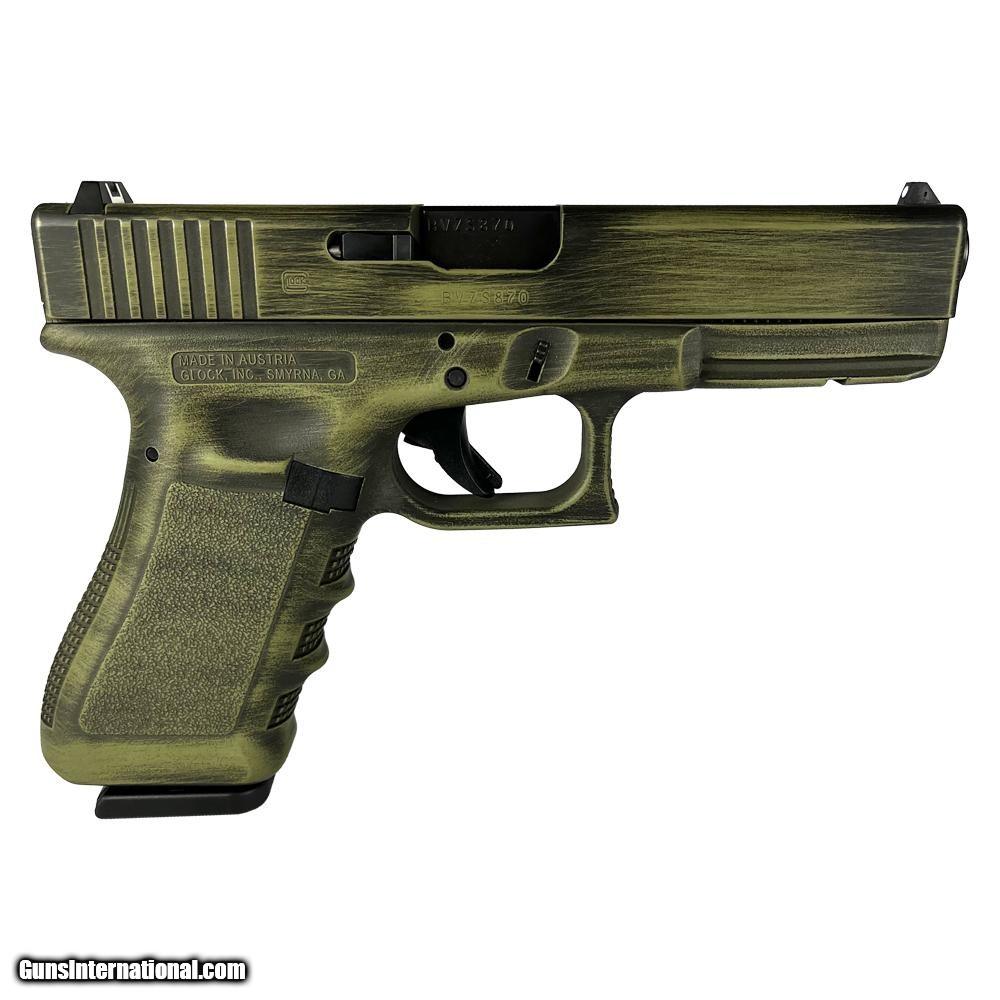 Description: Guns Listing ID: 365407 The Glock G17 Gen 3 Custom \"Bazooka Green Distressed\" is a semi-automatic pistol known for its reliability and effectiveness. This 9mm Luger model features a 4.49\" barrel and has a magazine capacity of 17 rounds. The pistol comes with two magazines and has an overall length of 7.32\". The unique Bazooka Green Distressed finish gives this firearm a distinctive, rugged appearance, making it stand out among standard models. Manufacturer: GLOCK Model: G17 GEN 3 Caliber Info: 9MM LUGER (9X19 PARA) Condition: new Barrels: 4.49" BARREL Action: SEMI AUTOMATIC Finish: BAZOOKA GREEN Weight: 1.375 lbs. Price: $689.99 Contact Seller |
