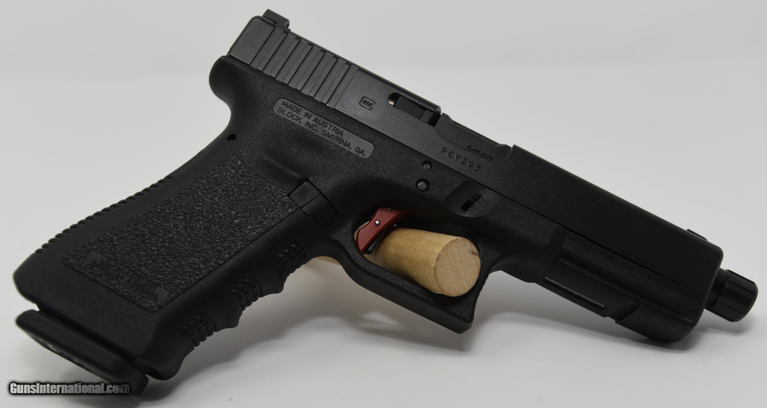 Description: Here is a nice customized Glock G17 Gen 3 chambered in 9mm. This is a great starter pistol. Has a Steel City Armory trigger finished in red. The barrel is a threaded Silencer Co. Also has Trijicon HD sights with orange in the front. Has an extended magazie release as well. SOLD |