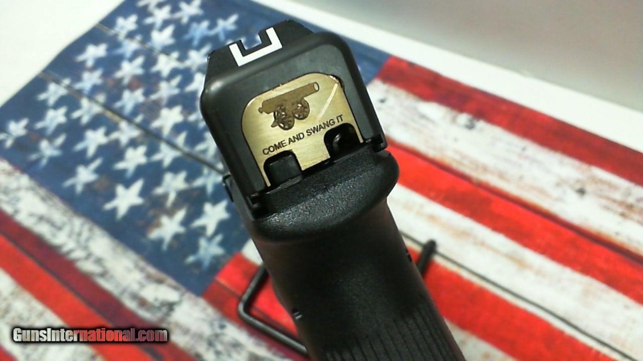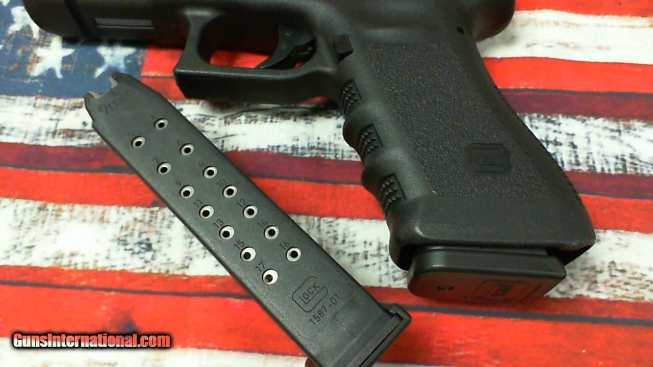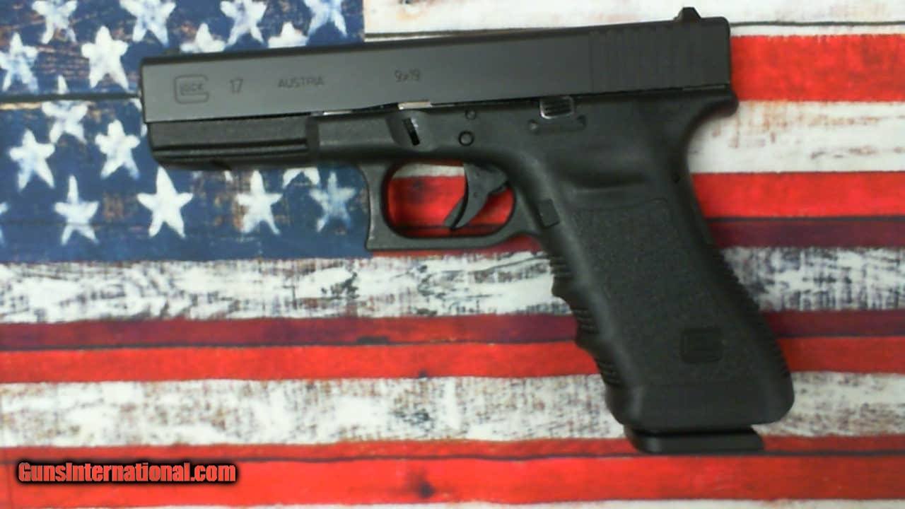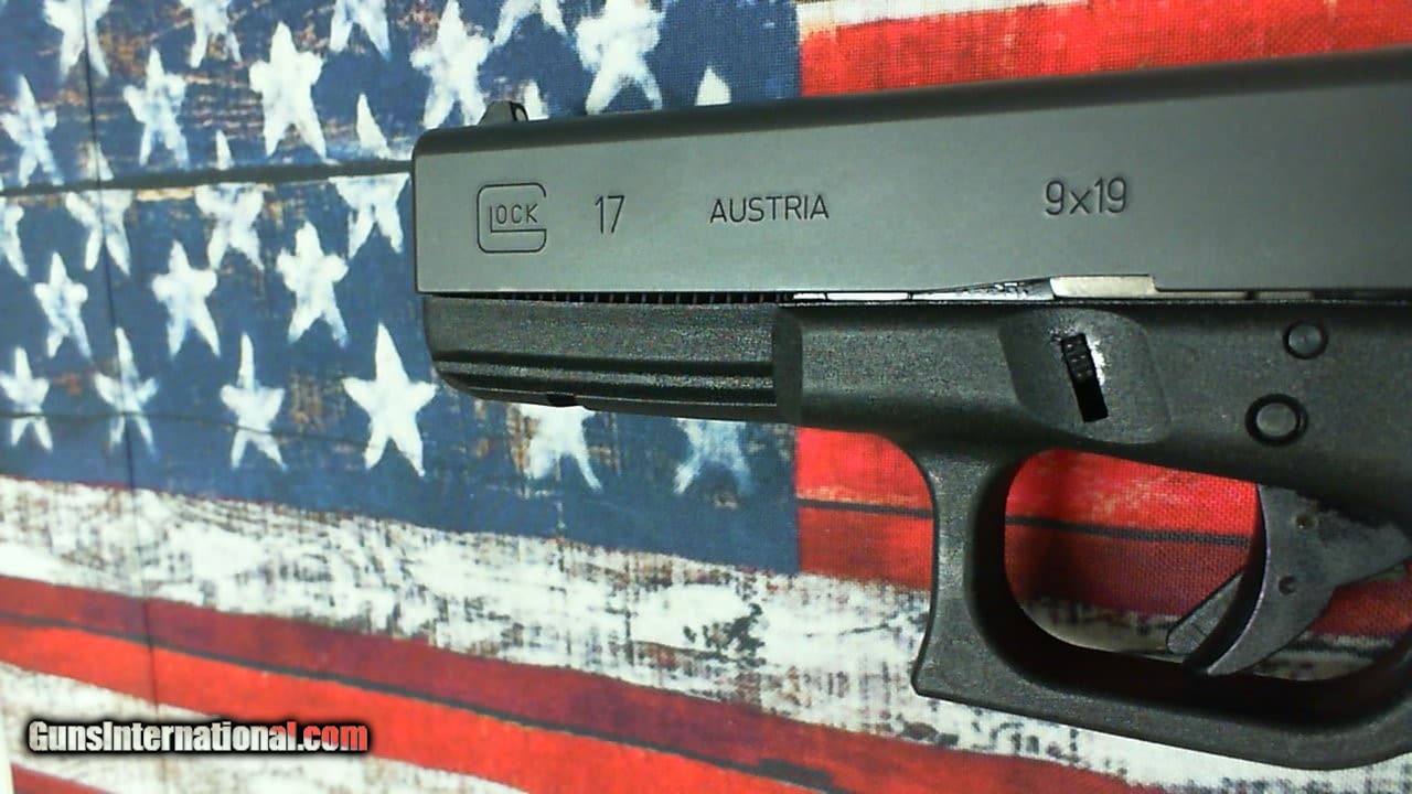 Description: Guns Listing ID: 565205 *** \"Come and Swang It\" back plate The Glock 17 pistol is safe, easy, and quick - precisely what you need in critical situations. It features Glock‚‚s Safe Action system which provides a consistent trigger pull from the first to the last round. The three automatic independently operating mechanical safeties are built into the fire control system of the pistol. All three safeties disengage sequentially as the trigger is pulled and automatically reengage when the trigger is released. The frame is made of polymer with hardened steel guides. It features an ideal grip angle and low weight. The slide stop lever and the magazine catch are easily operated with the shooting hand. The advanced surface treatment of the slide results in optimal hardness by considerably reducing wear and tear and it makes it corrosion resistant, even when operating in saltwater conditions. The matte surface minimizes light reflection. The barrel is mechanically locked and cold-hammer forged. It also has the same advanced surface treatment as the slide. Its extractor serves as a loaded chamber indicator to comply with the laws of certain states and its position may visually and physically indicate whether there is a cartridge in the chamber of the pistol. This Gen3 model has fixed sights, a 5.5-lb. trigger pull, and includes two 17-round magazines. MANUFACTURER: GLOCK FAMILY: G17 Series MODEL: G17 TYPE: Semi-Auto Pistol ACTION: Safe Action CALIBER/GAUGE: 9mm FINISH: Gas Nitride FINISH TYPE: Black FRAME: Polymer Frame BARREL: 4.48\" OVERALL LENGTH: 8.03\" CAPACITY: 17 + 1 # OF MAGAZINES: 2 MAG DESCRIPTION: 17 rd. SIGHTS: Fixed Glock Sights SIGHT TYPE: Fixed Sights WEIGHT: 25.06 oz. SHIPPING WEIGHT: 3.4 lbs. SAFETY FEATURES: No Manual Safety CASE: Plastic ADDL INFO: Accessory Rail MFG MODEL NO: PI1750203 UPC: 76450350217 SOLD Manufacturer: GLOCK Model: G17 GEN 3 Caliber Info: 9MM LUGER (9X19 PARA) Condition: Used - Non-Certified Barrels: 4.5" barrel Finish: BLACK |
