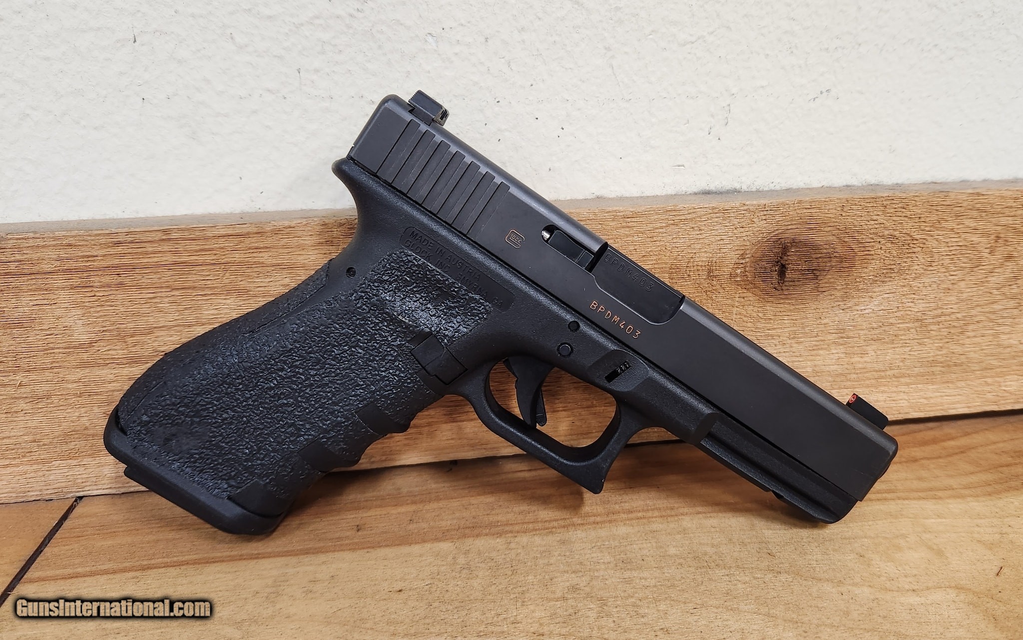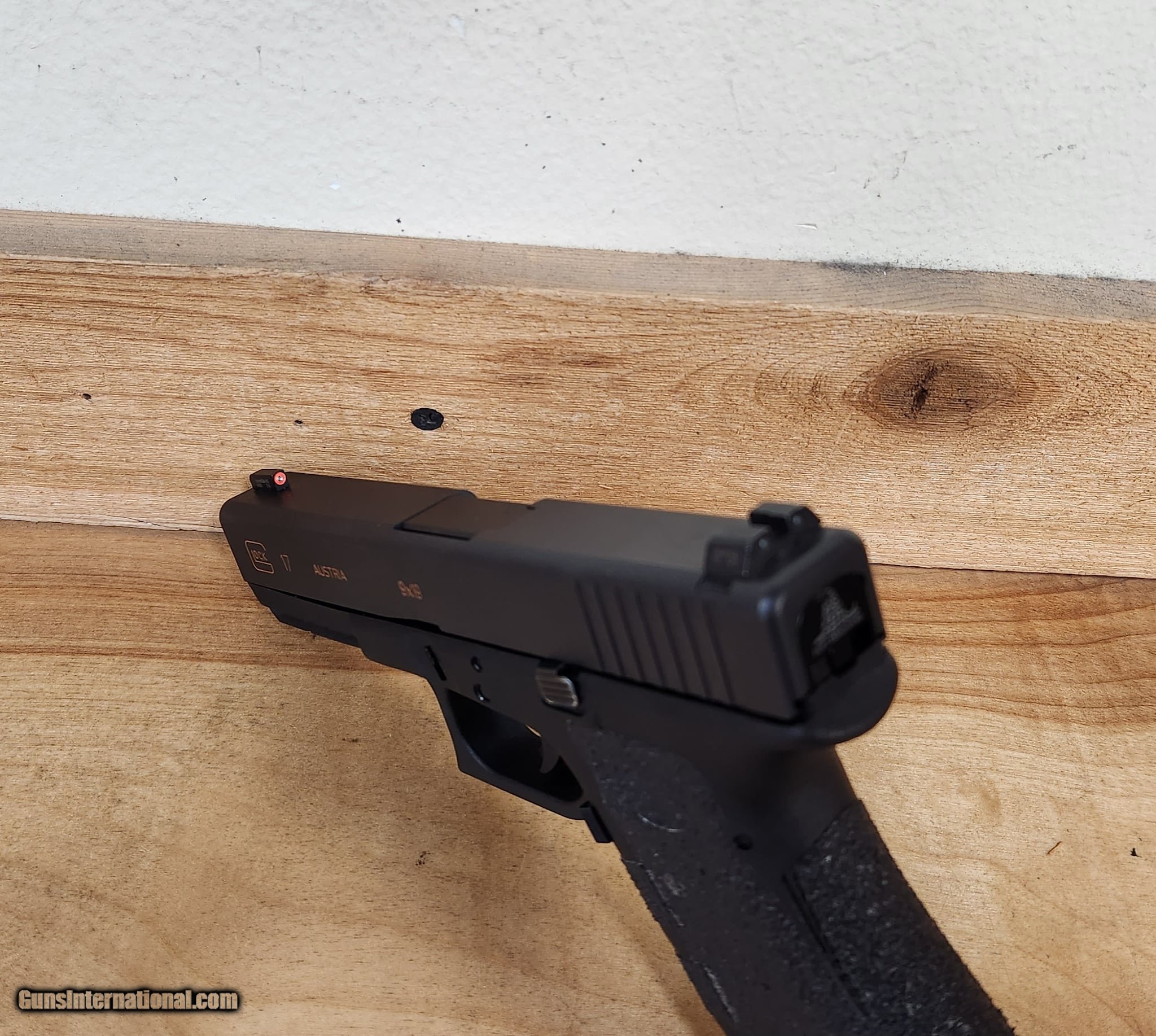 Description: Guns Listing ID: 742840 Has some light holster wear on the slide, near muzzle. Ameriglo bright orange dot tritium Sights. Has magwell and rubberized grip tape installed on the grip frame. Includes original box and two 17 round magazines. Doesn‚‚t appear to have been fired much by the light wear. Overall nice gun in good condition SOLD Manufacturer: GLOCK Model: G17 GEN 3 Caliber Info: 9MM LUGER (9X19 PARA) Condition: Used - Non-Certified Barrels: 4.5" barrel Finish: BLACK |