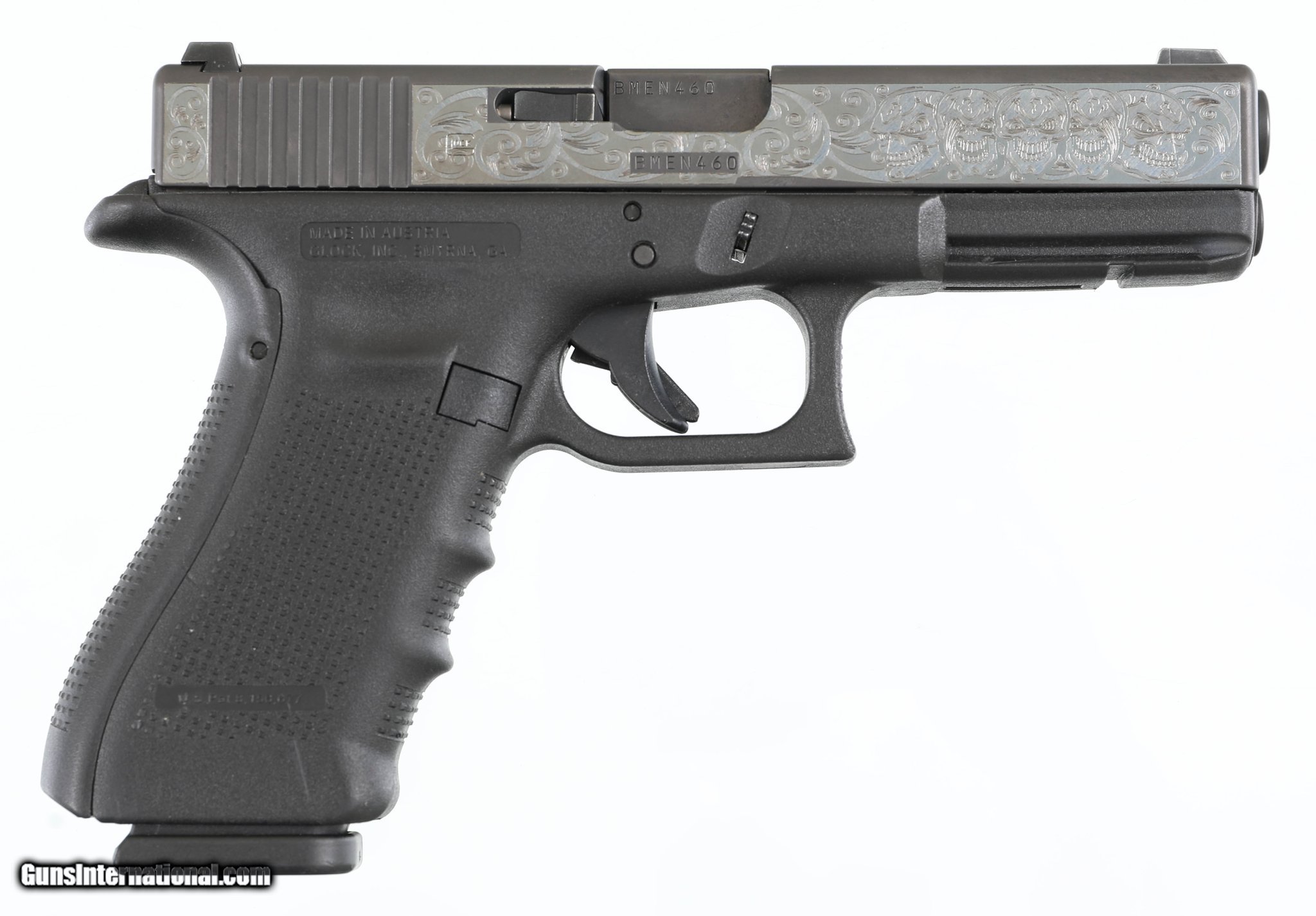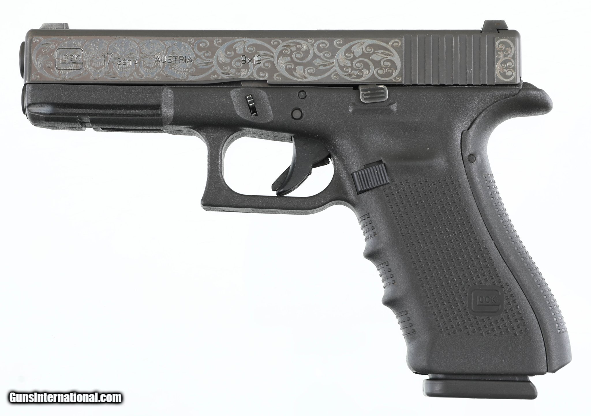 Description: Guns Listing ID: 489756 MAKE - GLOCK MODEL - 17G4 FINISH - ENGRAVED BARREL - 5\" CALIBER - 9MM CAPACITY - 17 RD GRIPS - POYLMER CONDITION - EXCELLENT YEAR - N/A COMES WITH FACTORY BOX AND PAPERWORK SOLD Manufacturer: GLOCK Model: G17 GEN 4 Caliber Info: 9MM LUGER (9x19 PARA) Condition: Used - Non-Certified Barrels: 5 BARREL Finish: black blued engraved |