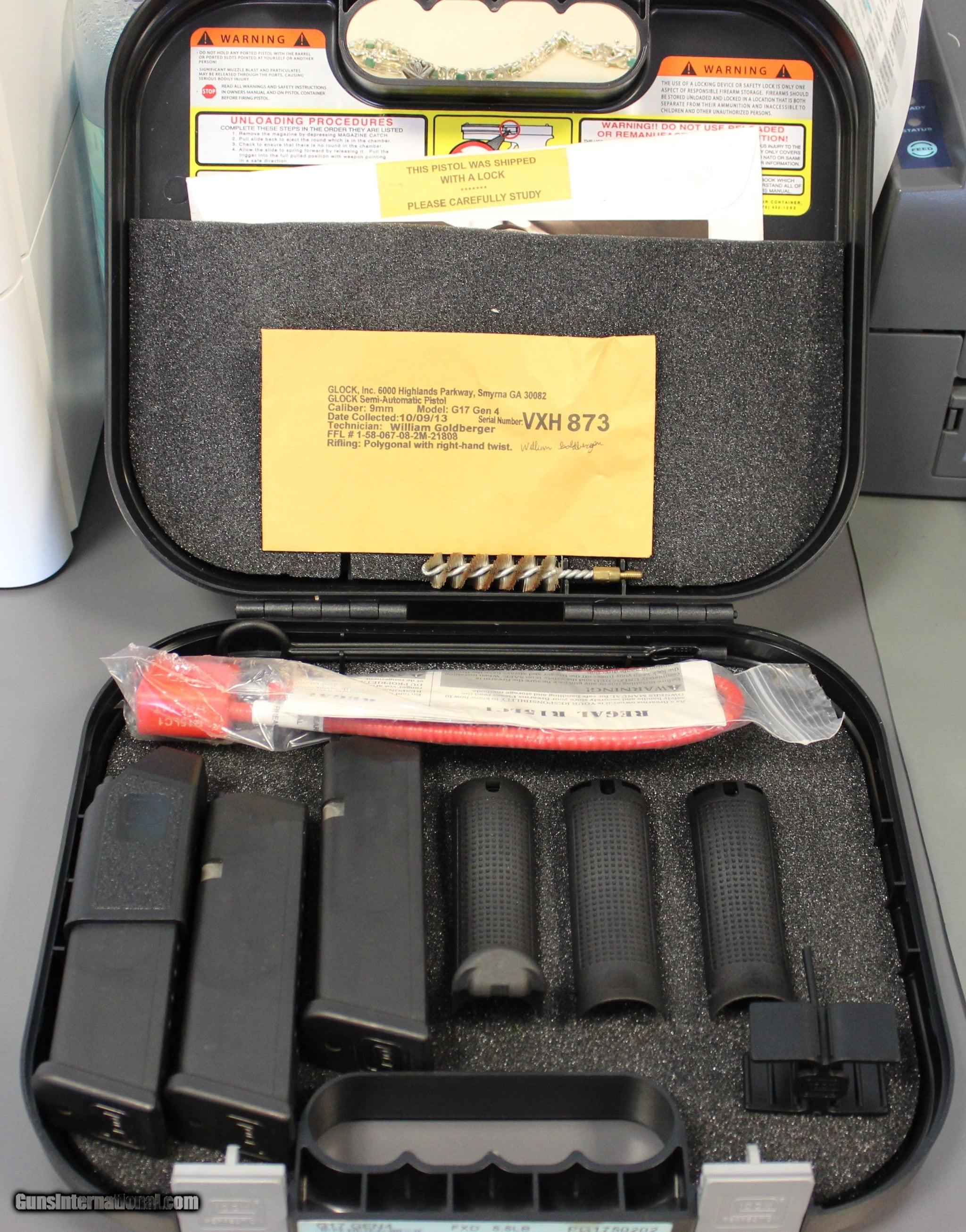 Description: Guns Listing ID: 319996 Good condition no damage with night sights, added grip and magwell. The original case, accessories, and three magazines SOLD Manufacturer: GLOCK Model: G17 GEN 4 Caliber Info: 9MM Condition: Used - Non-Certified Barrels: 4.5 BARREL |