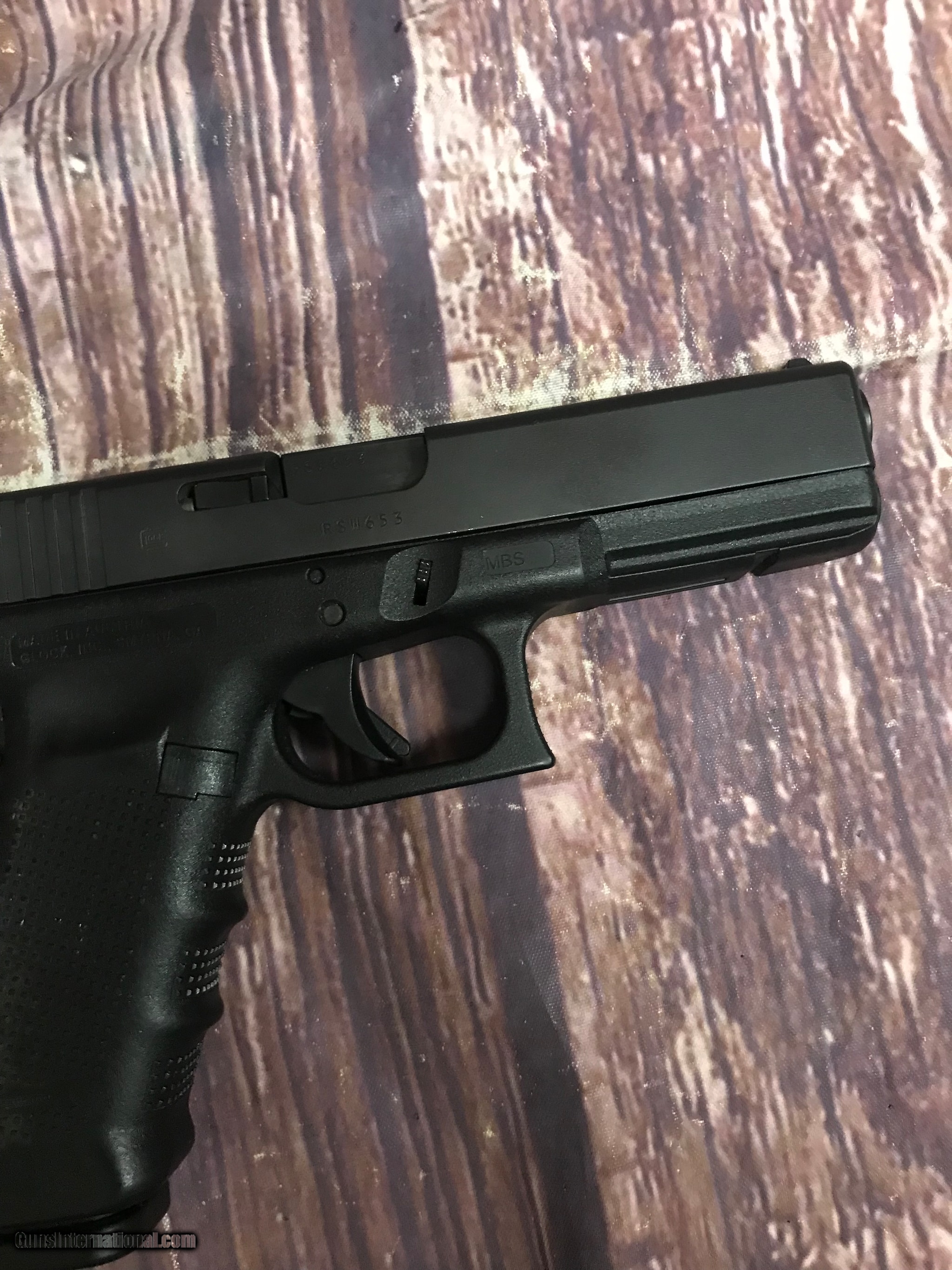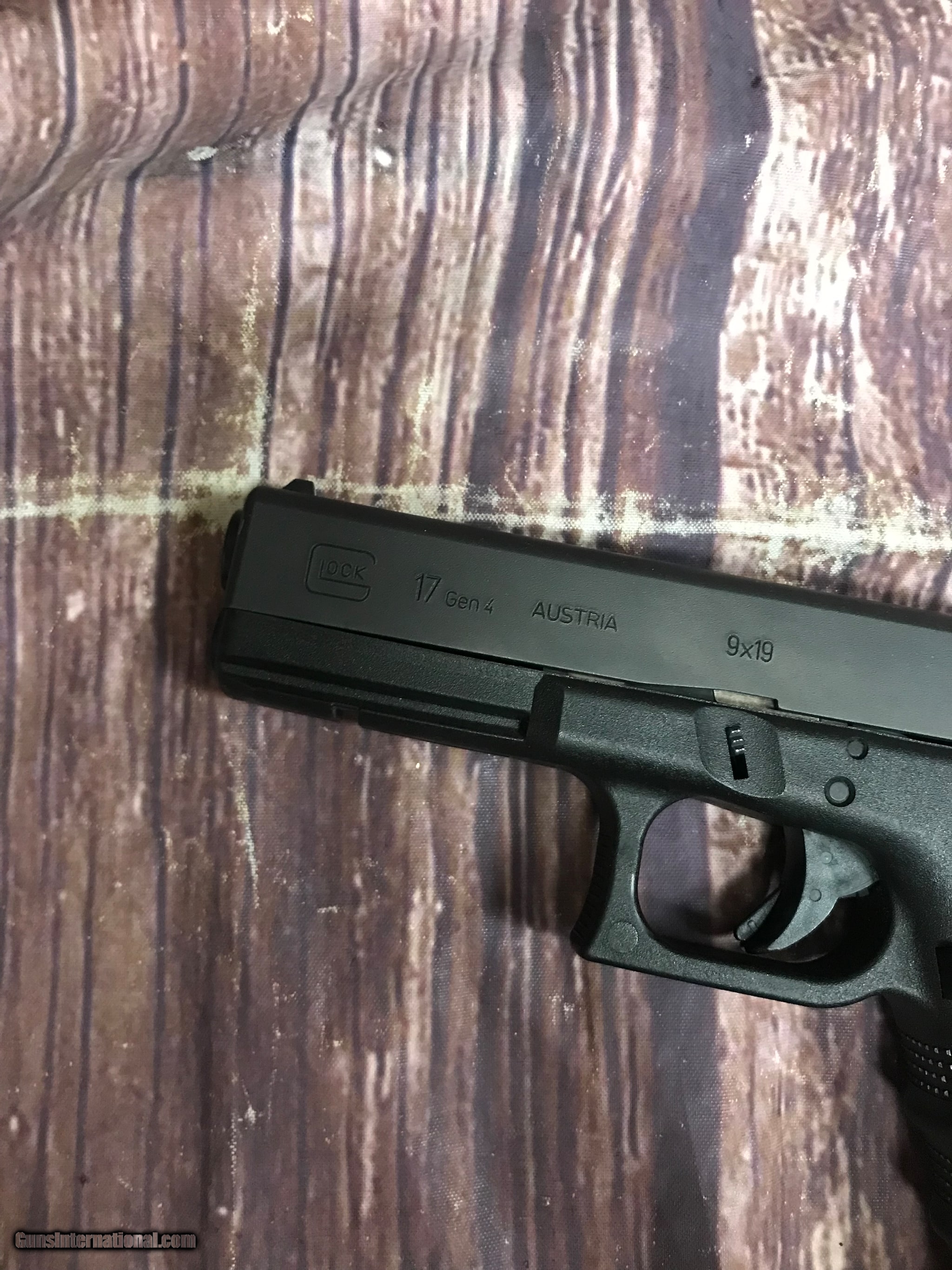 Description: Guns Listing ID: 710531 According to our rating scale I would Rate this gun \"Good\". I have taken multiple pictures to show the condition of it. We want you to get the best impression of it. With the hopes when you get it, that it is better than what you thought. 100% working order. some scratches and dings are present Comes with gun, 3 mags, backstraps, speed loader and box. The bore I would rate 7 out of 10. If I had to rate the firearm in condition I would say 7 out of 10. (Please see my pictures for a better detailed idea), Please see all Photos for a very detailed Description of condition. We rate firearms using these condition standards, for modern firearms. NEW-A gun given a grade of \"new\" looks just as it did when it left the factory and has never been sold at a retail store. PERFECT-A “perfect” gun is literally as good as new, although it may have been sold in a retail store. EXCELLENT-An “excellent” rating means the gun appears to be in perfect condition but may have had minor use. VERY GOOD-A “very good” firearm is perfect mechanically but may have minor cosmetic blemishes. GOOD-A rating of “good” indicates that the gun is in proper working condition but may show signs of wear. FAIR-A “fair” firearm may or may not be in safe working order. It has not been test fired, only visually inspected. It may need repair or maintenance. UNRATED-Unrated condition means this firearm has not been test fired, it may function perfectly or it may be in need of repair. Cosmetically it may be in very good to fair condition. You will need to look at the pictures and ask questions. SOLD Manufacturer: GLOCK Model: G17 GEN 4 Caliber Info: 9MM LUGER (9X19 PARA) Condition: Used - Non-Certified Barrels: 4.5 BARREL |