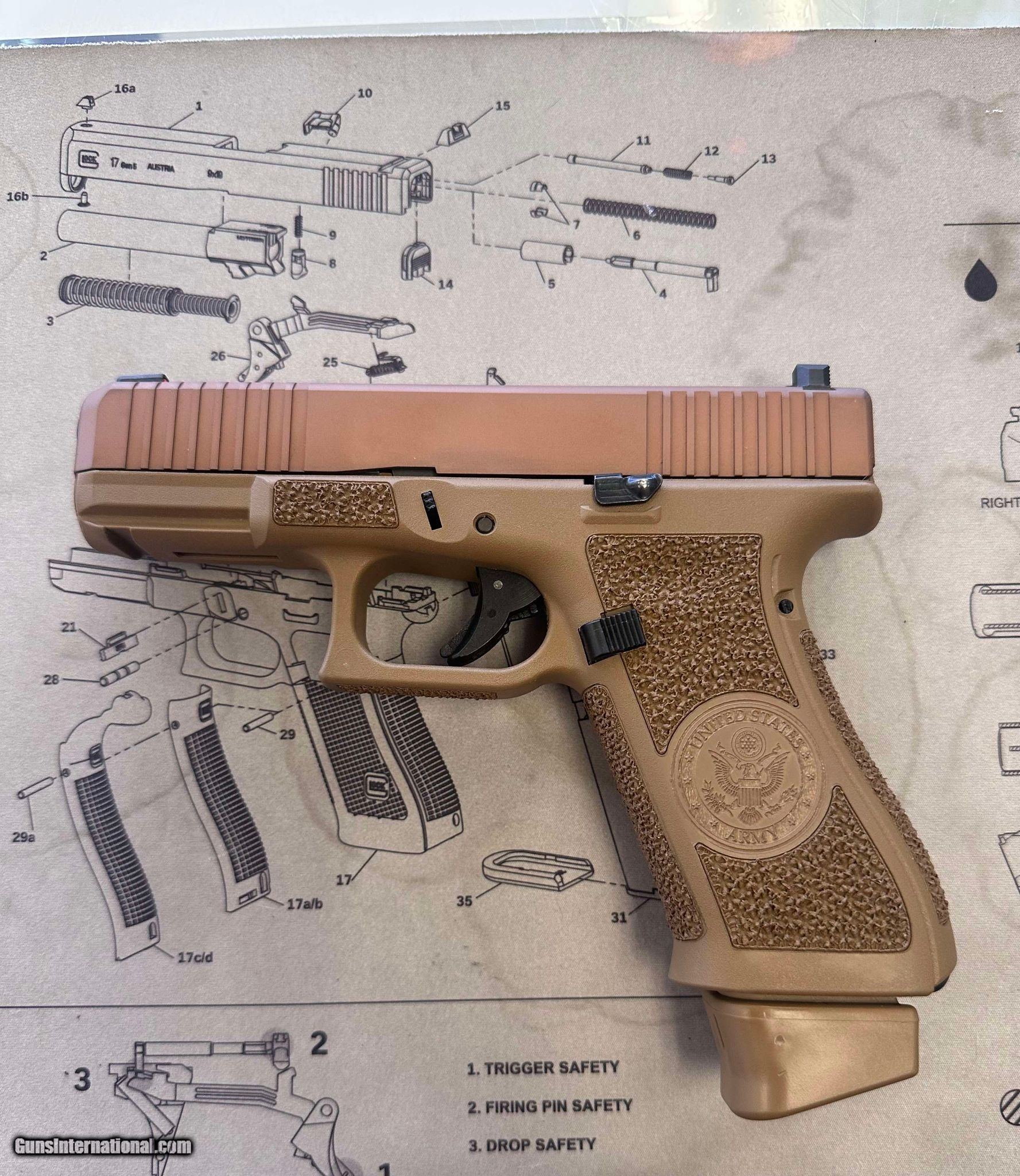 Description: Guns Listing ID: 467415 Minor scuff marks can be seen on the top of the slide. Will come with everything that is shown in photos. Well maintained pistil does have Army crest on the grips. * SOLD Manufacturer: GLOCK Model: G17 GEN 5 Condition: Used - Non-Certified Barrels: 4.49 Gauge Info: 9MM LUGER (9x19 PARA) Finish: coyote tan |