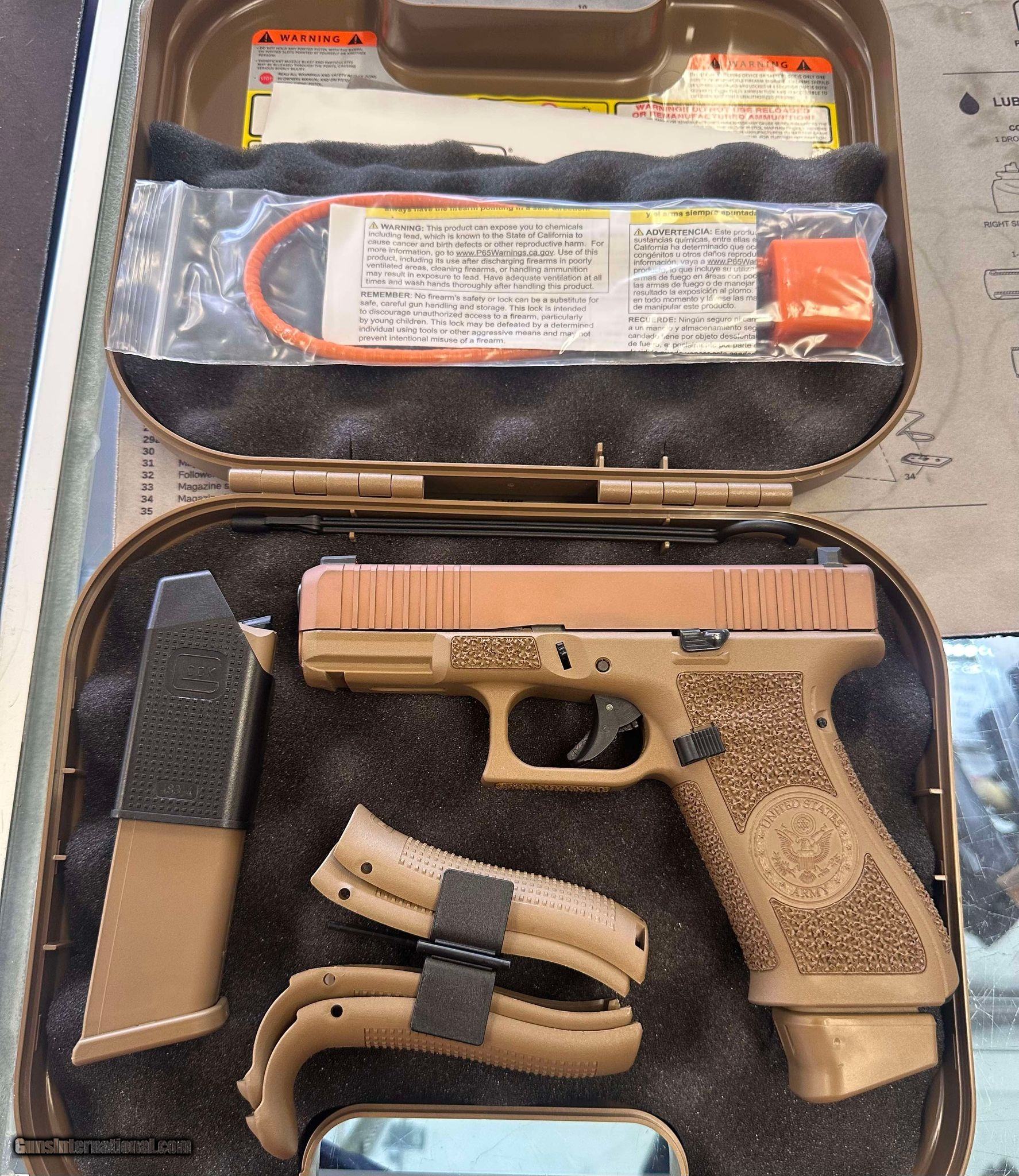 Description: Guns Listing ID: 467415 Minor scuff marks can be seen on the top of the slide. Will come with everything that is shown in photos. Well maintained pistil does have Army crest on the grips. * SOLD Manufacturer: GLOCK Model: G17 GEN 5 Condition: Used - Non-Certified Barrels: 4.49 Gauge Info: 9MM LUGER (9x19 PARA) Finish: coyote tan |