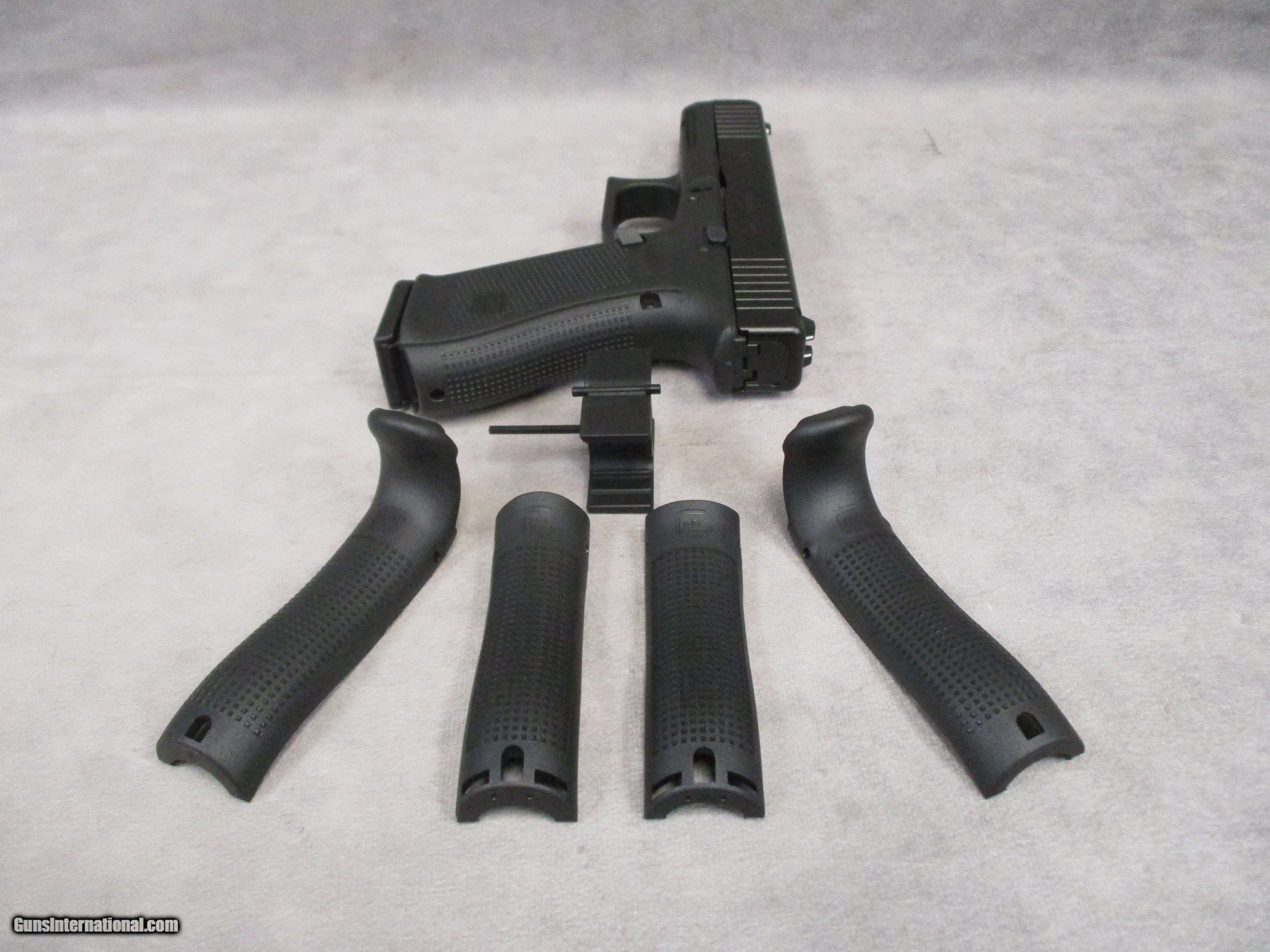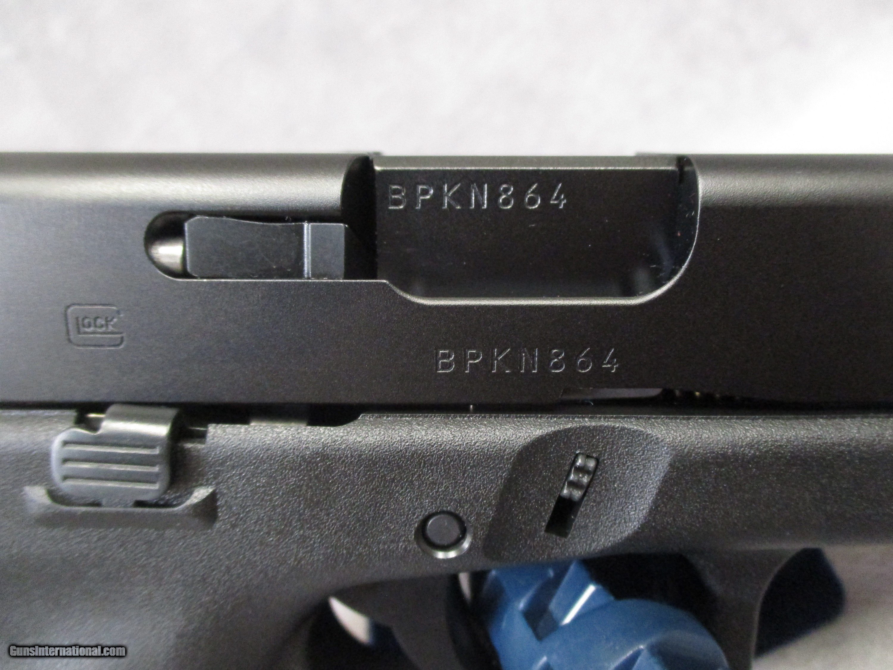Description: The Glock G17 in 9mm has always been popular as a self-defense pistol, whether it be in the home or the car. It has seen extensive use with law enforcement and military organizations worldwide. With the Gen 5, additional features have been added over previous gens. These include the Glock Marksman Barrel (GMB) with improved polygonal rifling and target barrel crown, ambidextrous slide stop levers, no finger grooves on the grip frame, and the new nDLC finish, which is more durable than the finish used on previous generations of Glock pistols. The G17 Gen 5 shown here is brand new in the box and ready to go. Overall length is 7.95 inches. The maximum width is a slim 1.34 inches. The sight radius is 6.5 inches. Included with the gun and box are the manual, three 17-round magazines, a Glock magazine loading tool, alternate back straps, and cleaning brush and rod. One of the best features of the Glock pistol is the expansive market available to a Glock owner that wishes to customize their Glock pistol a bit. There are thousands of different options available in just replacement parts alone. This includes replacements for the trigger return spring, entirely new trigger systems, pins, controls, barrels, recoil springs, magazine release buttons, extended magazines, sights, and rear slide plates. There are many lights, lasers, and combos that will fit the Glock’s frame rail. If you are looking for a new duty pistol or a home defense gun that is easily customized, the G17 Gen 5 is an excellent choice. This example is effectively new in the box, though one of the three magazines is missing, hence the reduced price. SOLD Handgun Caliber: 9x19mm Parabellum (9mm Luger, 9x19mm NATO) Manufacturer: Glock G. m. b. H. Model: G17 Gen 5 Serial Number: BPKN864 Bore: Hybrid traditional/polygonal rifling, 6 grooves, 1:9.8 inches (1 in 250 mm) twist Ejectors: Auto-Ejection Condition: New Old Stock Barrels: Carbon Steel Barrel Type: Glock Marksman Barrel Action: Semi-automatic, Browning type short recoil system, striker fired double action. Triggers: Glock smooth combat trigger, 5.5 lbs. pull weight Stock: Polymer grip Fore End: Integral M1913 compatible rail LOP: 2.75 inches (70 mm) Finish: nDLC finish, matte black Weight: 22.22 oz. w/o mag, 24.97 oz. w/empty mag, 33.33 oz. loaded Sights: Polymer Glock sights, sight radius 6.5 inches (165 mm) Case: Glock box |