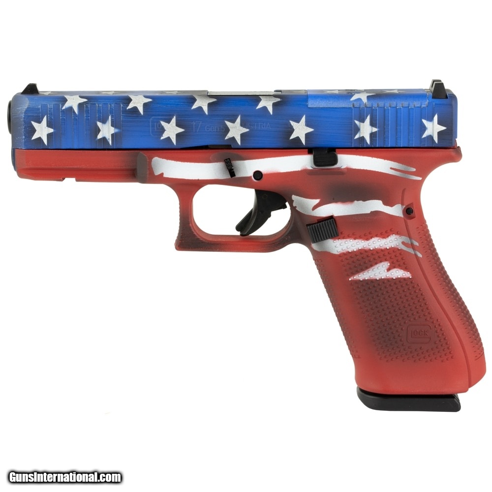 Description: Guns Listing ID: prod232624 Glock G17 M.O.S., GEN 5, Semi-automatic, Striker Fired, Full Size, 9MM, 4.49\", Red, Wht, Blu BW Flag, Interchangeable, 17 Rounds, 3 Mags, Fixed Sights, Polymer SOLD Manufacturer: GLOCK Model: G17 GEN 5 MOS Caliber Info: 9MM LUGER (9X19 PARA) Condition: new Barrels: 4.49 BARREL Finish: RED, WHITE, AND BLUE |