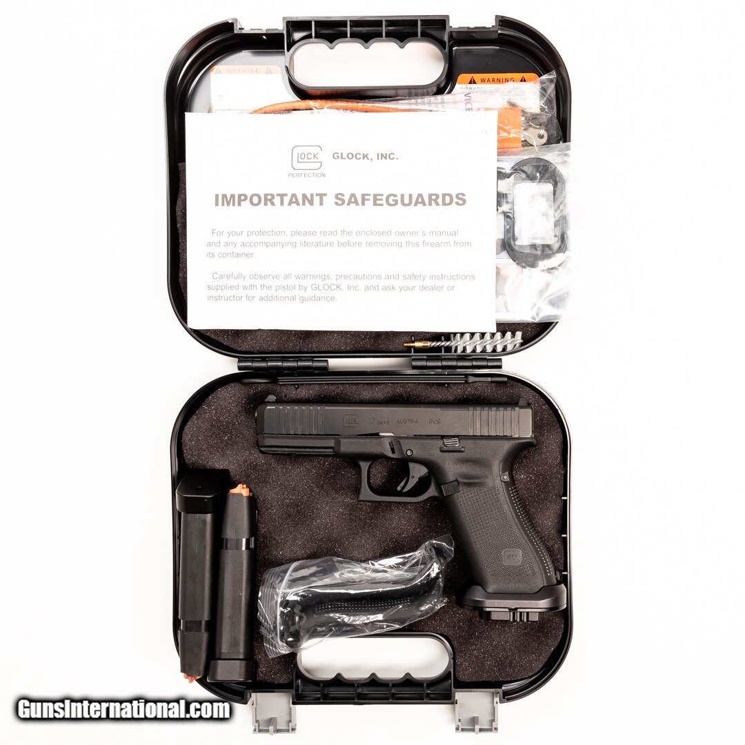 Description: Guns Listing ID: 892213 With the G17 Gen5 MOS, GLOCK enhances the already near-perfect Gen5 model of \"The original\" with the addition of the Modular Optic System (MOS). The slide is precision machined to provide a mounting system for popular optic sights. This is a welcome addition, as micro red dot sights on pistols have become increasingly popular over the last decade. This G17 MOS features a Dawson Ice magwell. Purchase includes the original case, manual, three 17-round magazines with heavy base plates, backstraps, and an optic plate kit. Get the best bang for your buck when you get a Certified Used Firearm . When you see the Certified Used stamp on any of our firearms, you can be confident that you’re getting exactly what you want – a gun only in very good to excellent condition and held to the highest quality standard. All Certified Used Guns come with a ‘no questions asked’ return policy . PLUS, ALL CERTIFIED USED GUNS SHIP FREE! SOLD Manufacturer: GLOCK Model: G17 GEN 5 MOS Caliber Info: 9MM LUGER (9X19 PARA) Condition: Used - Certified Barrels: not specified Finish: BLACK |
