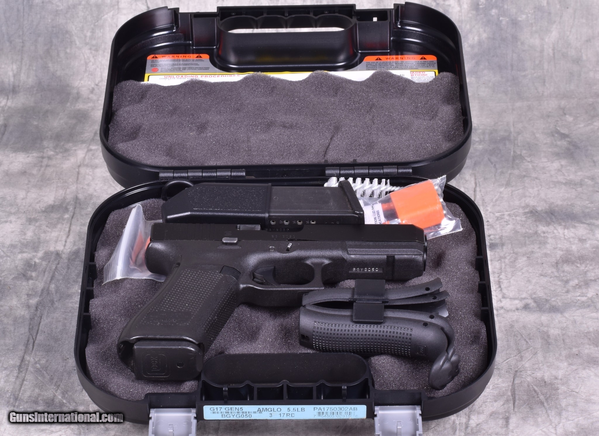 Description: Guns Listing ID: 903617 Includes TWO (2) seventeen round factory magazines, AmeriGlo H3 steel night sights, additional backstraps, lock, manual, and case. SOLD Manufacturer: GLOCK Model: G17 GEN 5 Caliber Info: 9MM LUGER (9X19 PARA) Condition: Used - Non-Certified Barrels: 4.9 BARREL Finish: GRAY |