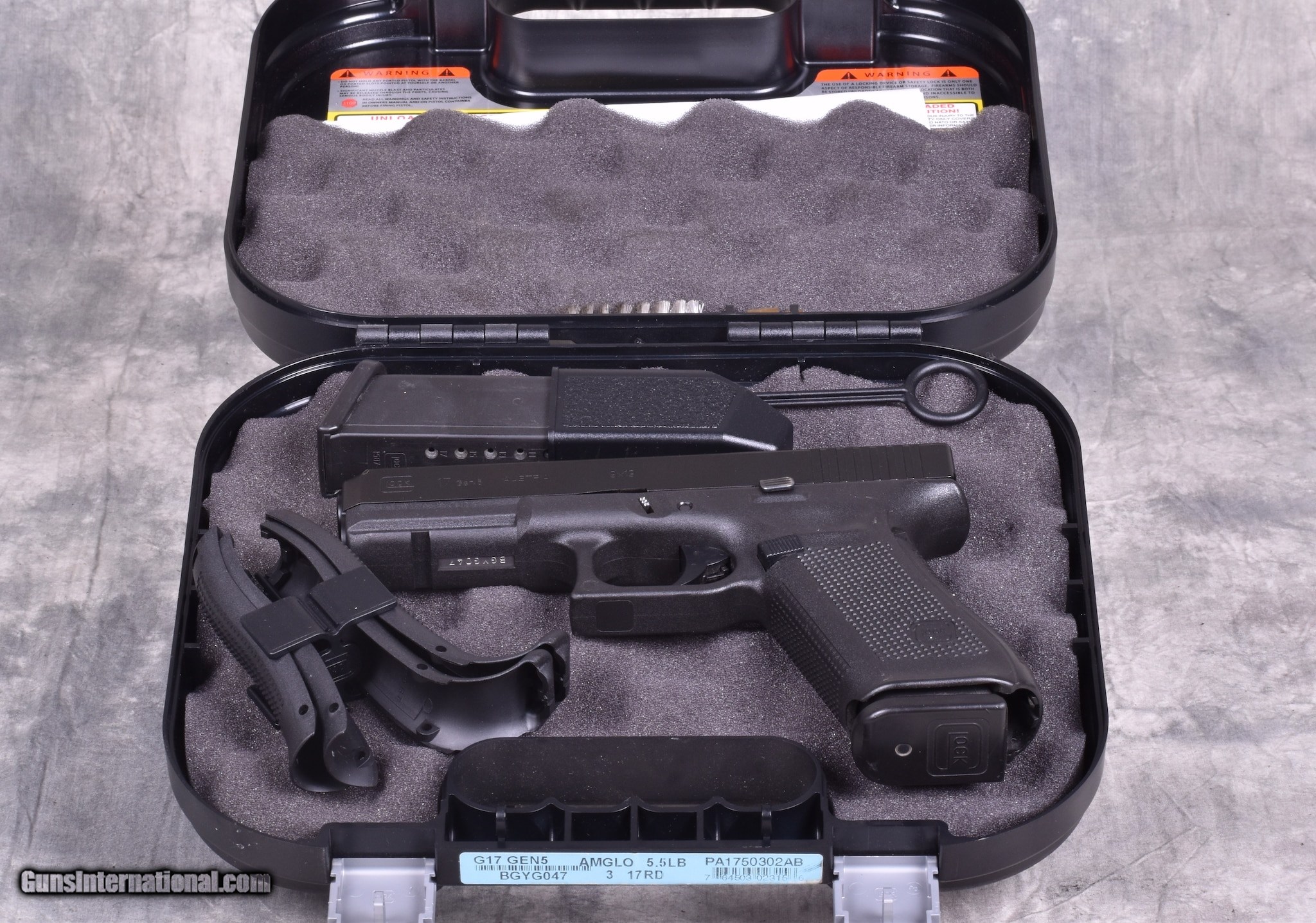 Description: Guns Listing ID: 903674 Includes TWO (2) seventeen round factory magazines, AmeriGlo H3 steel night sights, additional backstraps, manual, and case. SOLD Manufacturer: GLOCK Model: G17 GEN 5 Caliber Info: 9MM LUGER (9X19 PARA) Condition: Used - Non-Certified Barrels: 4.9 BARREL Finish: GRAY |