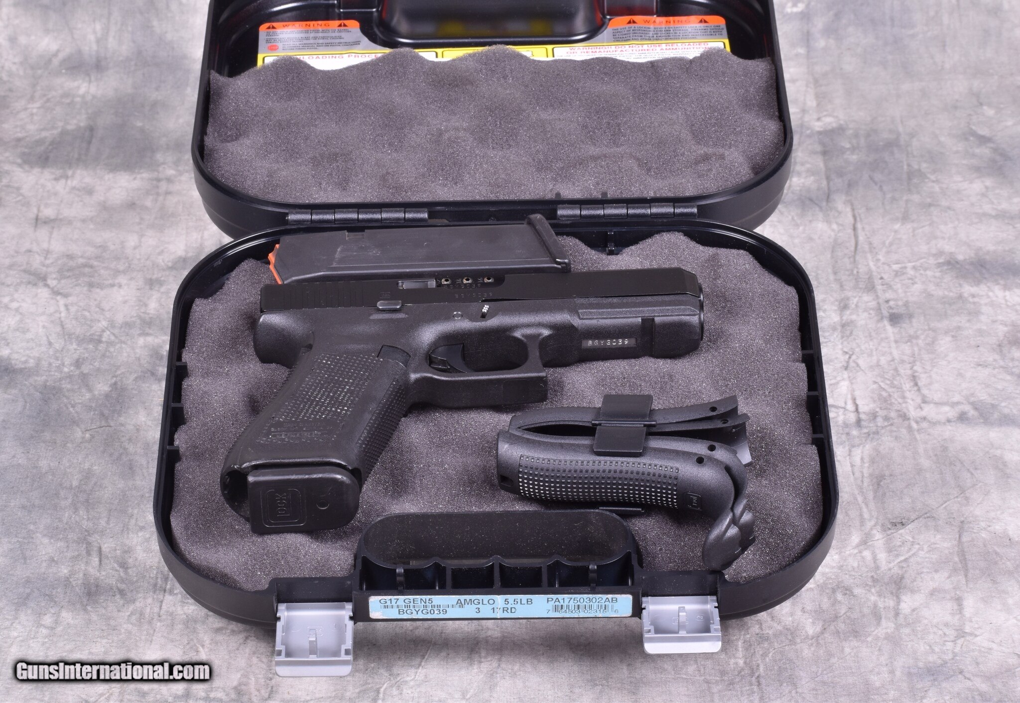Description: Guns Listing ID: 903727 Includes TWO (2) seventeen round factory magazines, AmeriGlo H3 steel night sights, additional backstraps, manual, and case. SOLD Manufacturer: GLOCK Model: G17 GEN 5 Caliber Info: 9MM LUGER (9X19 PARA) Condition: Used - Non-Certified Barrels: 4.9 BARREL Finish: GRAY |