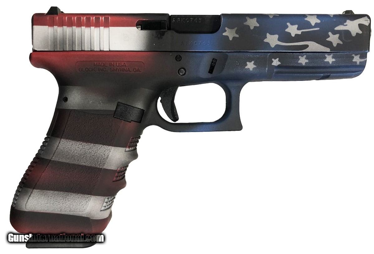 Description: Guns Listing ID: 445065 Designed for professionals, the Glock G17 is the most widely used law enforcement pistol worldwide. It is trusted by law enforcement officers around the globe due to its unsurpassed reliability, and low weight. With the revolutionary \"Safe Action\" trigger system, the G17 is safe, easy, and quick; just what one needs in high-pressure situations. This G17 Gen3 model has fixed sights and a 5.5-lb. trigger pull. SOLD Manufacturer: GLOCK Model: G17 Gen 3 Caliber Info: 9MM LUGER (9X19 PARA) Condition: new Barrels: 4.49" barrel Finish: BATTLEWORN FLAG |