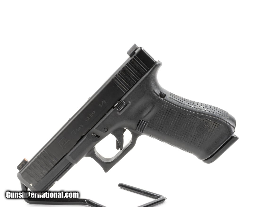 Description: Guns Listing ID: 491454 Police Trade-In Glock G17 Gen5 9mm 17+1 4.49\" Good Condition Manufacturer: Glock Model: G17 Gen5 Condition: Good (Grade 3) Caliber: 9x19mm Action: Semi-Auto / Striker Fired Barrel Length: 4.49\" Capacity: 17+1 Features: No finger grooves, front & rear slide serrations, accessory rail, ambi slide catch. Inventory: Firearm (1) 17-rd magazine. UPC: 764503037092 • This item is a Police Trade-In or LEO. The gun you receive may vary from the gun featured in photos. This may include the number of mags, boxes/cases, any accessories, bore condition, and cosmetic flaws such as scratches, dents, blemishes, etc. • Please be aware that we have not test fired this gun. Unless otherwise stated, expect this firearm to fire and function safely. SOLD Manufacturer: GLOCK Model: G17 GEN5 Caliber Info: 9MM LUGER (9x19 PARA) Condition: Used - Non-Certified Barrels: 4.49 Finish: black |