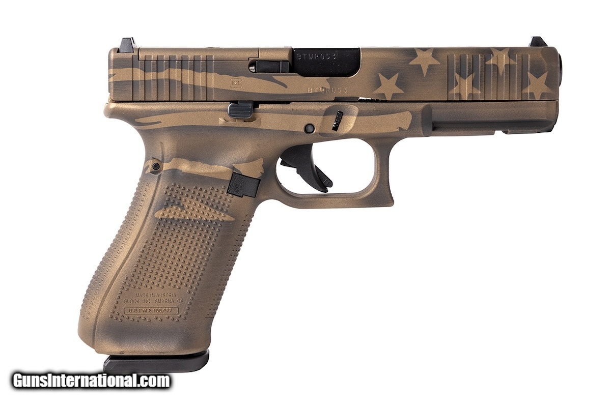 Description: Guns Listing ID: 429037 Glock G17 Gen5 MOS 9mm Semi-Auto Pistol with Coyote Battle Worn Flag Finish SOLD Manufacturer: GLOCK Model: G17 Gen 5 Caliber Info: 9 MM Condition: new Barrels: 4.49" barrel Finish: BATTLEWORN FLAG |