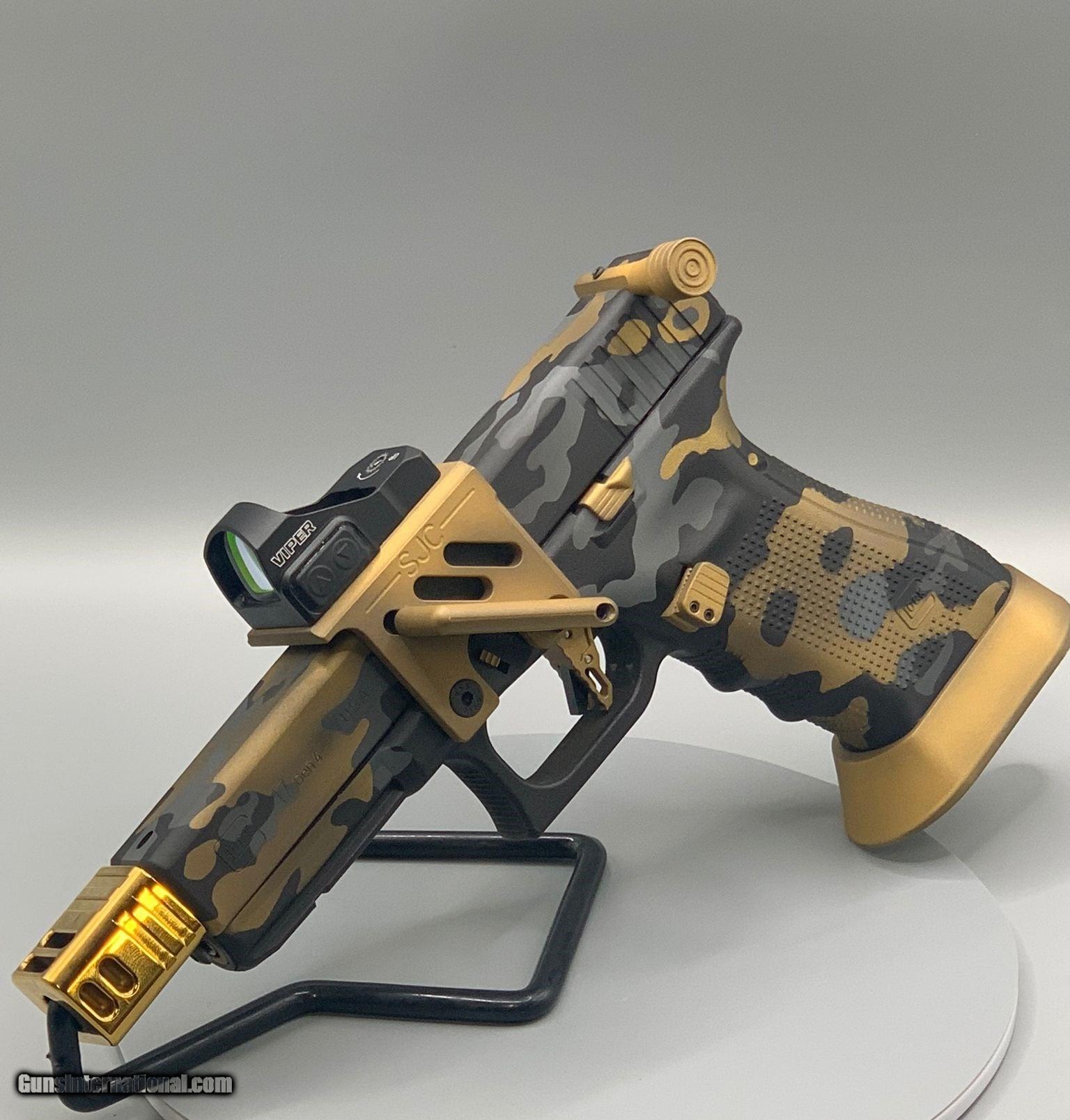 Description: Guns Listing ID: 1206555 This is a factory NEW, Never-Fired Gun. Our sister company, A Really Bad Design, is Certified by Cerakote(tm), they took the looks of this gun to another level. Pistol, Glock, G17 Open, Semi-Auto, 9mm, 5\" Barrel Comp, 2 Magazines - Vortex Viper, Open Tuned, Camo. SOLD Manufacturer: GLOCK Model: glock 17 gen 4 Caliber Info: 9MM LUGER (9X19 PARA) Condition: Used - Non-Certified Barrels: 5 BARREL Finish: CUSTOM |