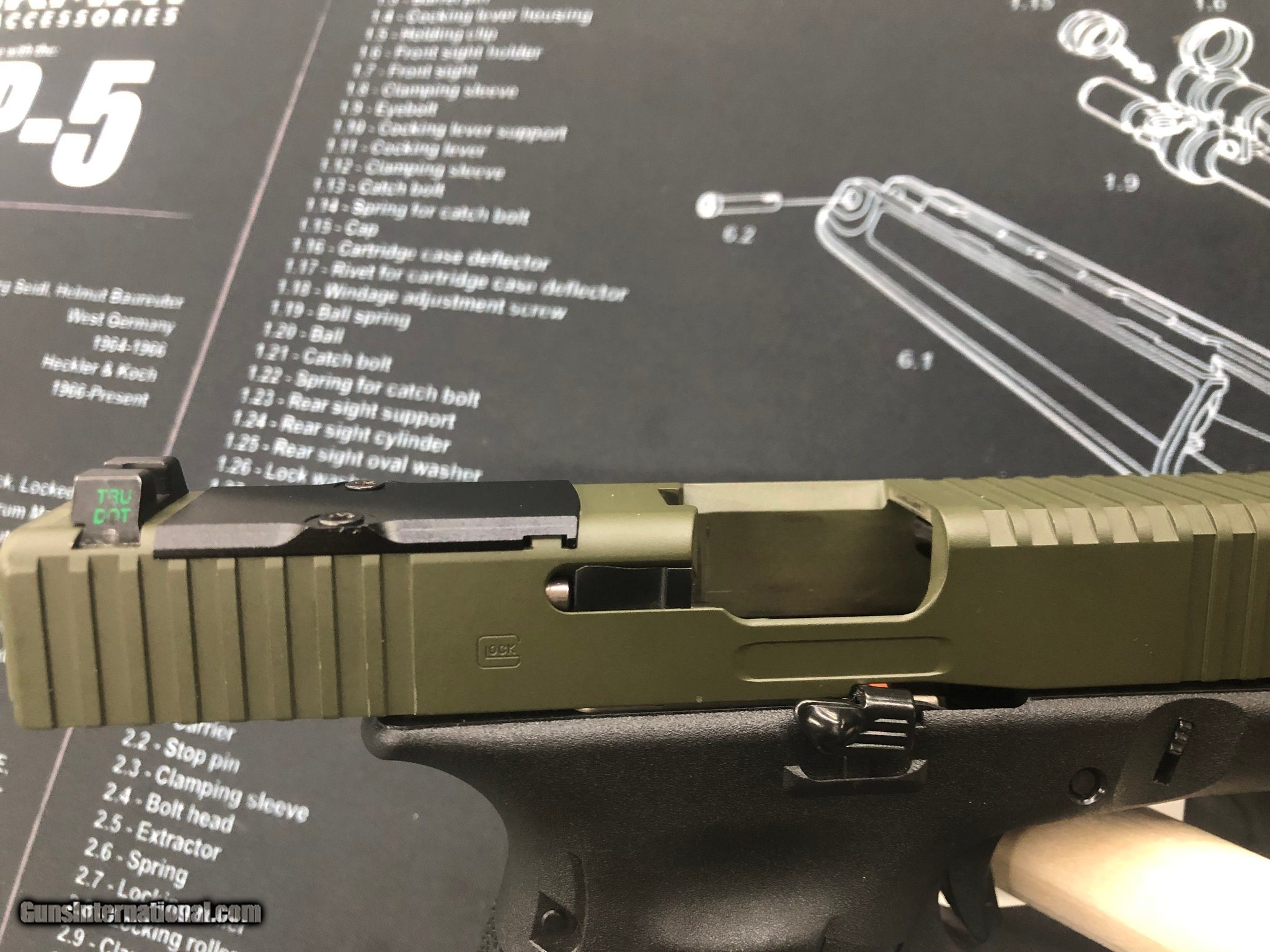 Description: Guns Listing ID: 520999 The Glock 17 Gen 5 is a full-size 9mm semi-automatic pistol known for its reliability, durability, and performance. This fifth-generation model features a marksman barrel for improved accuracy, an ambidextrous slide stop lever, and the removal of finger grooves on the grip for better ergonomics. This specific model comes with one magazine and original box with back straps, and also features the following upgrades from Jaegerworks milling: - RMR cut (behind BUIS) with screws - RMR cover plate - Mepro night sights - Front and rear enhanced serrations - Front top serrations - ODG Cerakoted - Glock extended slide release SOLD Manufacturer: GLOCK Model: glock 17 gen 5 Caliber Info: 9MM LUGER (9x19 PARA) Condition: Used - Non-Certified Barrels: 4 Action: SEMI AUTOMATIC Finish: od green |