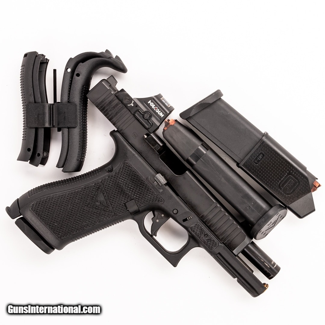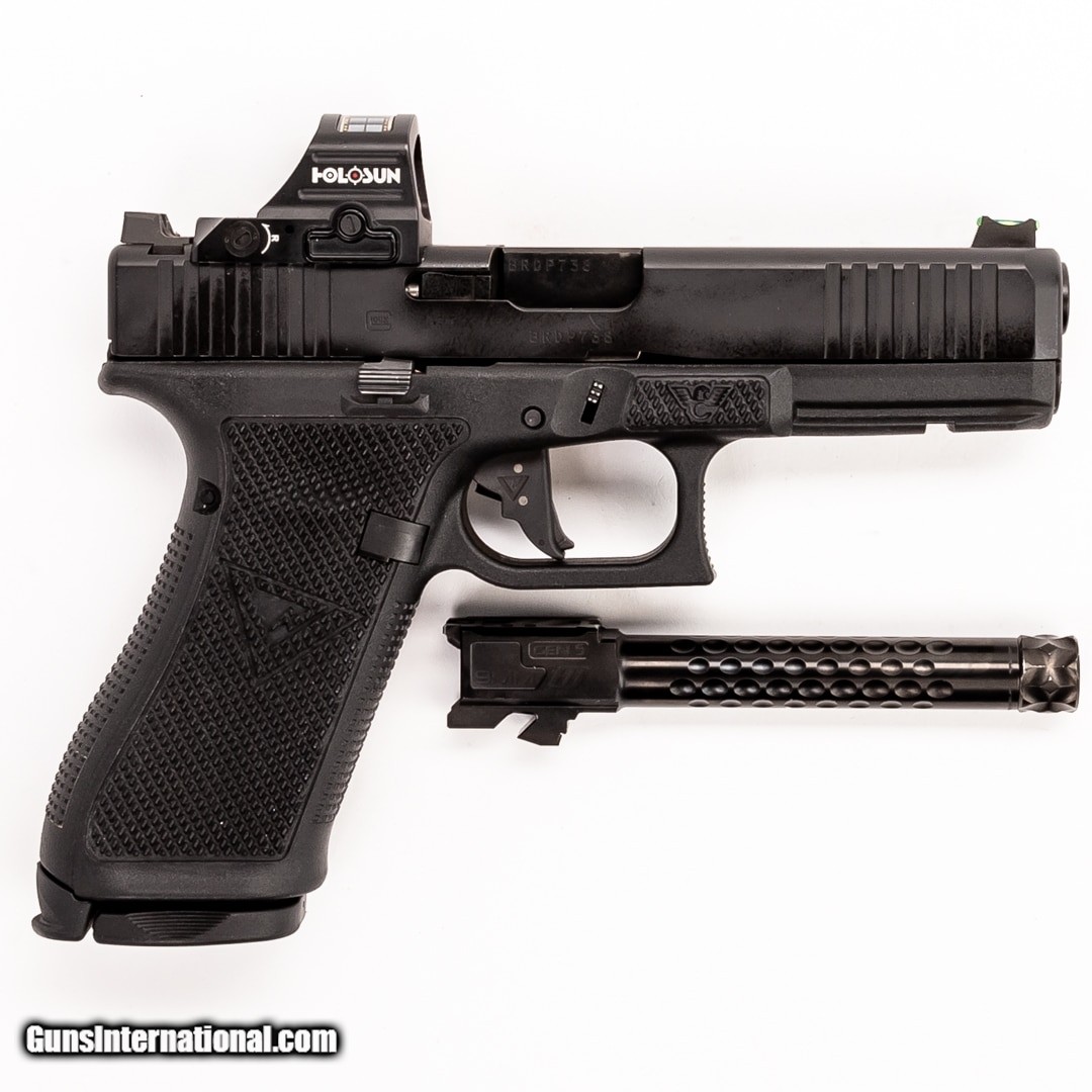 Description: Guns Listing ID: 365491 Wilson combat is an elite brand, Larry Vickers is a trusted leader in the firearms industry, and Glock has a trusted legacy that has withstood decades of faithful service throughout the world. The marriage of all of these aforementioned contributors has produced a quality duty handgun. The Wilson Compat 17 Gen5 Vickers Elite is a custom Gen 5 Glock 17 that has a custom texture on the grips, a custom tuned action and trigger, an Armor-Tuff slide, Battlesights with a green fiber optic front sight, and several Vickers Elite parts such as; a tactical magazine release, tactical grip plug, tactical magazine baseplates, and tactical slide stop. This handgun includes three 17-round magazines, a Holosun 507C, a threaded Rev Tech barrel, backstraps, and the original case with the manual. SOLD Manufacturer: GLOCK Model: WILSON COMBAT 17 GEN5 VICKERS ELITE Caliber Info: 9MM LUGER Condition: Used - Certified Barrels: 4.5 BARREL Finish: BLACK |