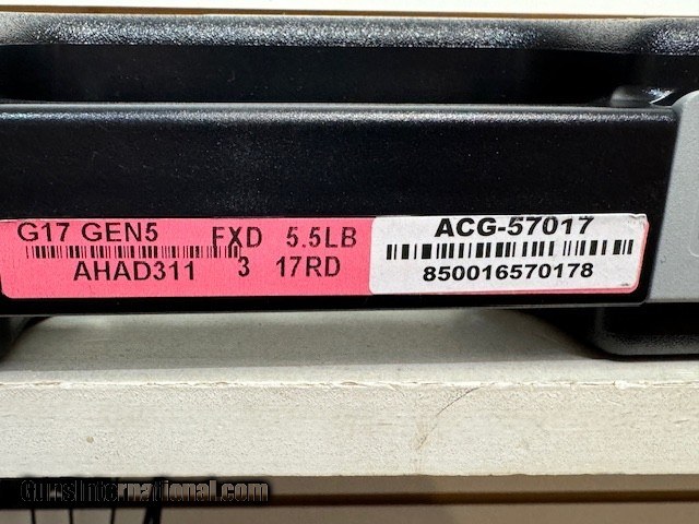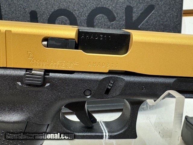 Description: new GLK 17G5 9MM 17RD GOLD SLIDE ACG-57017 new in box (CALIBER:9MM); (MAG CAPACITY:LUGER); (GUN TYPE:PISTOL: SEMI-AUTO); (MODEL SERIES:17); (ACTION:SAFE ACTION); (CAPACITY:17+1); (FINISH:CERAKOTE GOLD); (STOCK:BLACK POLYMER); (SIGHTS:FT: WHITE DOT RR: WHITE OUTLINE); (BARREL LENGTH:4.49); (OVERALL LENGTH:7.32); (FEATURES:APOLLO CUSTOM EDITION); (DEPT:HANDGUN) Buyer pays shipping Millers Gun Center Located in New Castle, Delaware "Home of TAX-Free shopping" No Credit Card Fees Send Gun international inquiry and then call 302-328-9747 to complete your purchase SOLD Serial Number: AHAD311 |