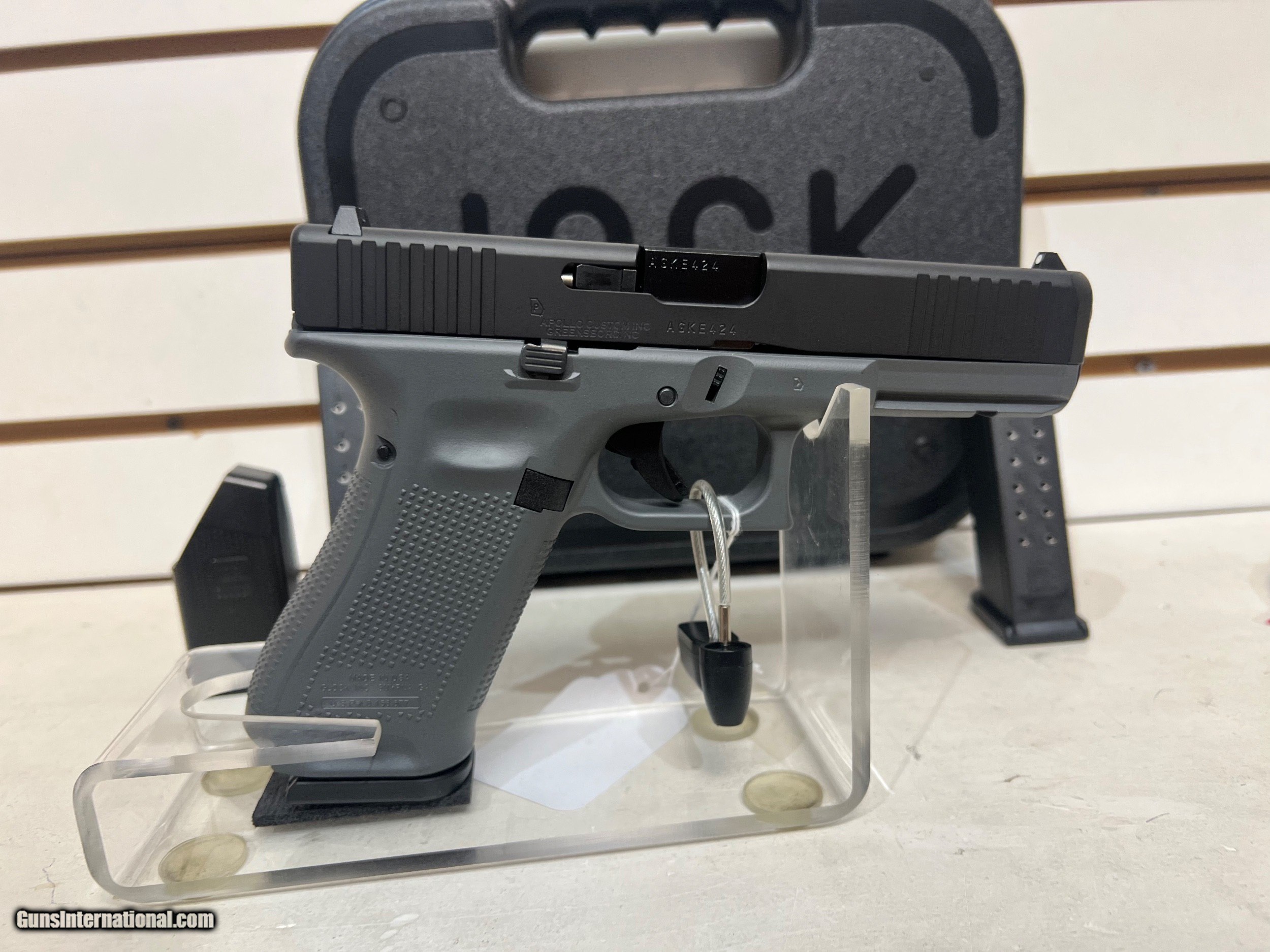 Description: new Glock Gen 5 17 Concrete Gray Elite Black 9mm ACG-57016 new in box Brand Glock Model Gen 5 17 Concrete Gray Elite Black Caliber 9mm Capacity 17+1 Features Apollo Custom Edition;Cerakote Concrete Gray, Black Slide Type Pistol: Semi-Auto Action Safe Action Finish Cerakote Black Stock Cerakote Concrete Gray Sight FT: White Dot RR: White Outline Safety Safe Action-3 Separate Automatic Safeties Receiver Cerakote Concrete Gray Barrel Length 4.49 Overall Length 7.32 Weight 22.04 oz Number Of Mags 3 Buyer pays shipping Millers Gun Center Located in New Castle, Delaware "Home of TAX-Free shopping" No Credit Card Fees Send Gun international inquiry and then call 302-328-9747 to complete your purchase SOLD Serial Number: AGKE424 |