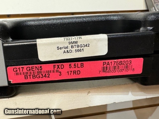Description: Used Glock 17 9mm, With glock, 3 Mags Buyer pays shipping Millers Gun Center Located in New Castle, Delaware "Home of TAX-Free shopping" No Credit Card Fees Send Gun international inquiry and then call 302-328-9747 to complete your purchase SOLD Handgun Caliber: 9x19mm Parabellum (9mm Luger, 9x19mm NATO) Manufacturer: Glock Model: 17 Serial Number: BTBG342 |