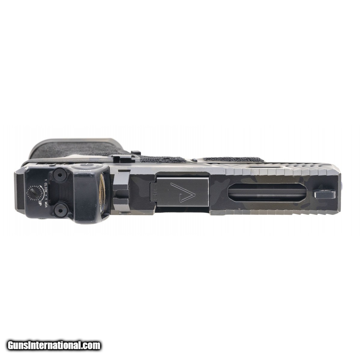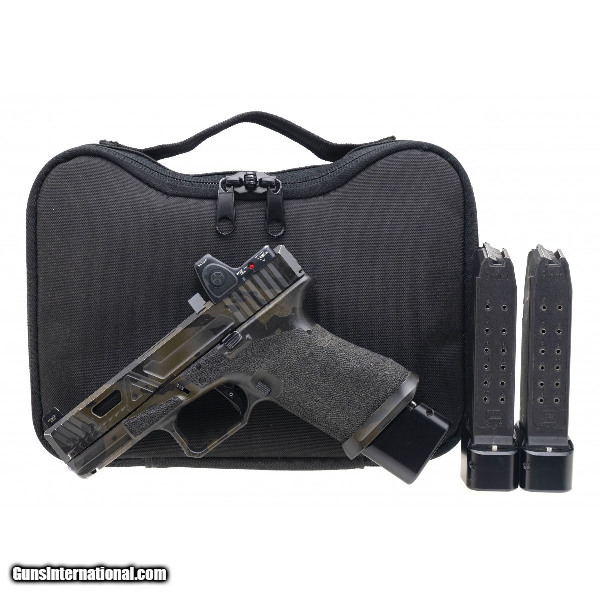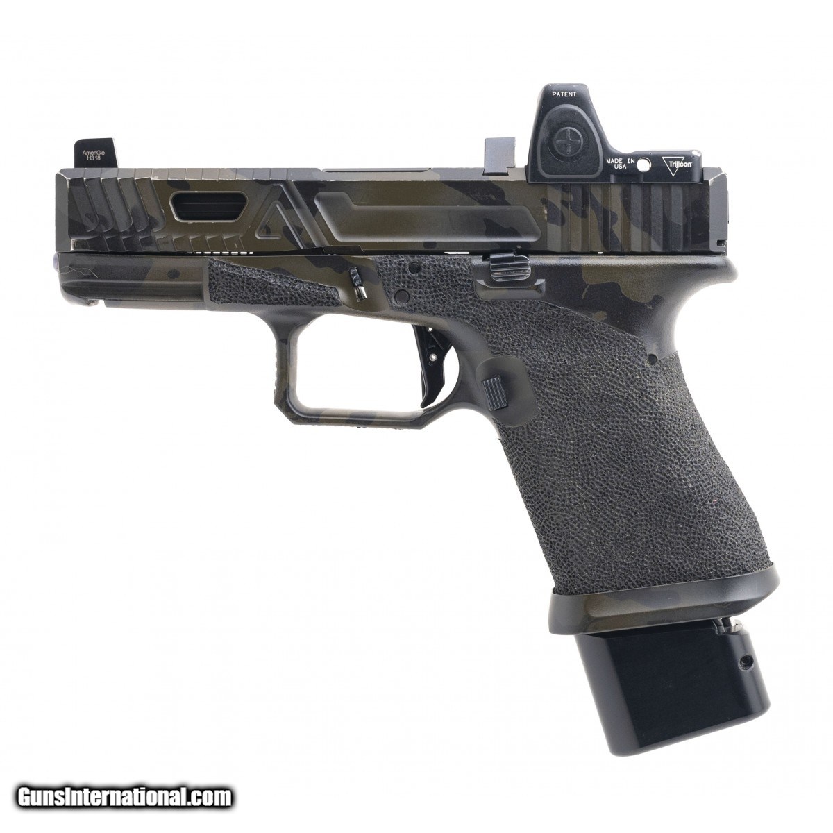 SN:BFMC367. Modern production 9mm with a 4.01 Agency barrel, with DLC. Bore is excellent. Compact pistol with polymer frame. Agency Slide with camo finish. Grips are excellent with custom stippling. Slide is ported and mounted with Trijicon RM08 red dot sight. Overall condition is excellent. Comes in agency range bag and two extra magazine.