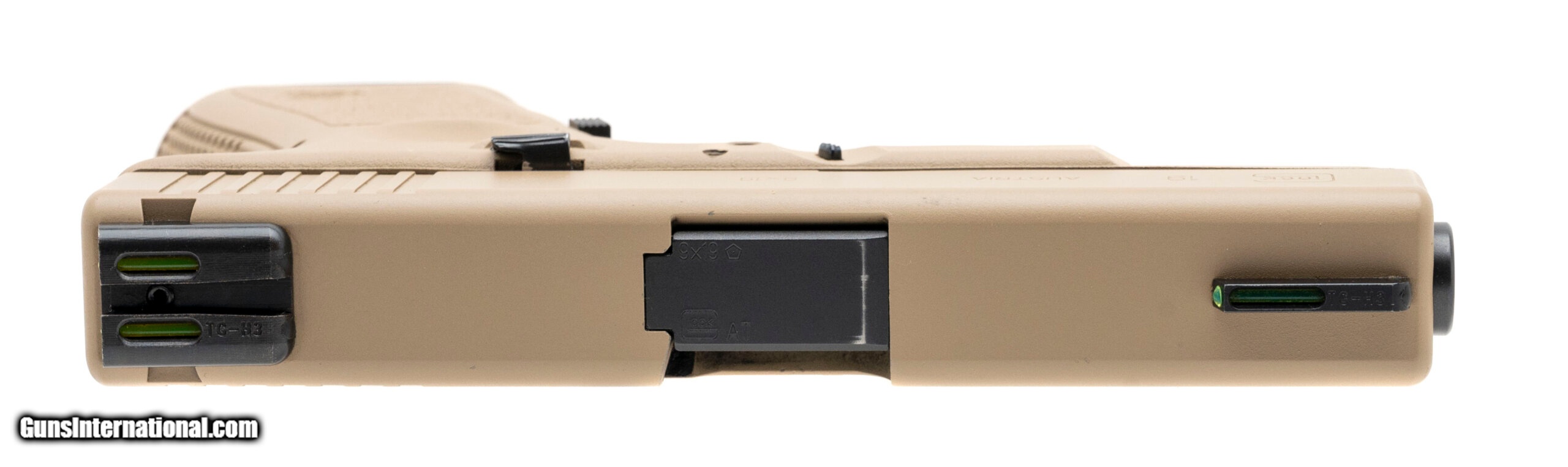 Description: "SN: VRG103. Modern production. 9mm with a 4"" barrel. Bore is in very good condition. Compact polymer frame pistol. Tan finish and grips are in very good condition with wear noted. Overall condition is very good. SOLD |
